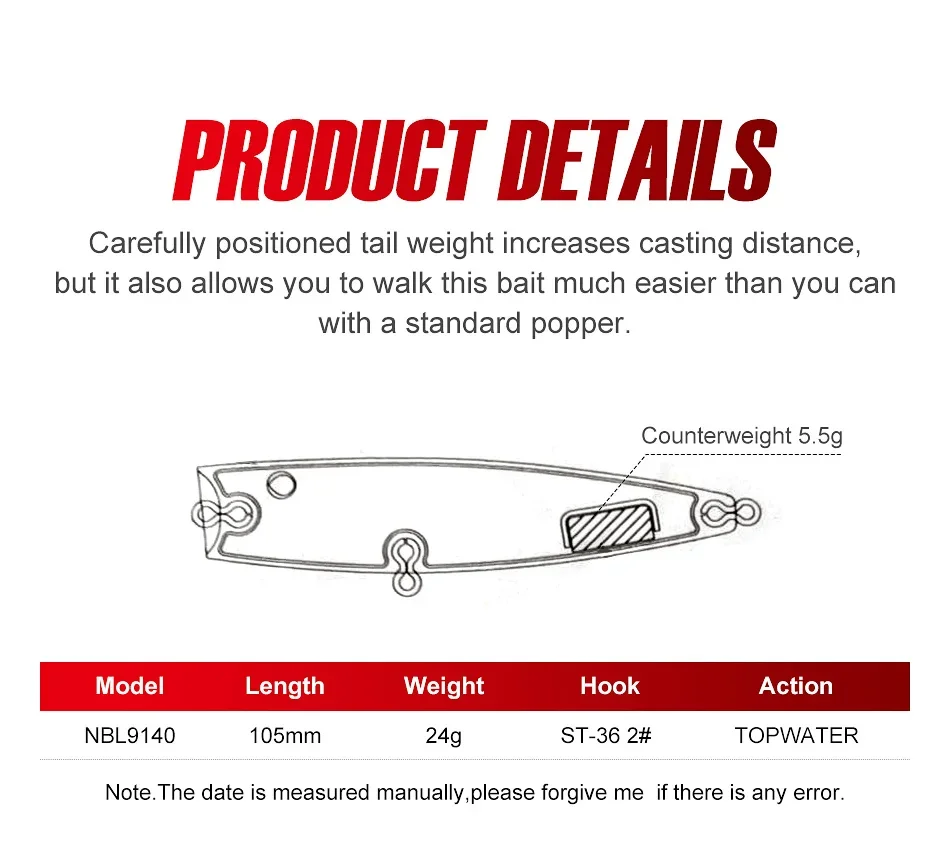 Noeby 105mm 24g Topwater Popper Señuelos de pesca flotantes Wobblers lanzamiento largo cebos duros artificiales invierno mar señuelo de pesca fresco NBL9140