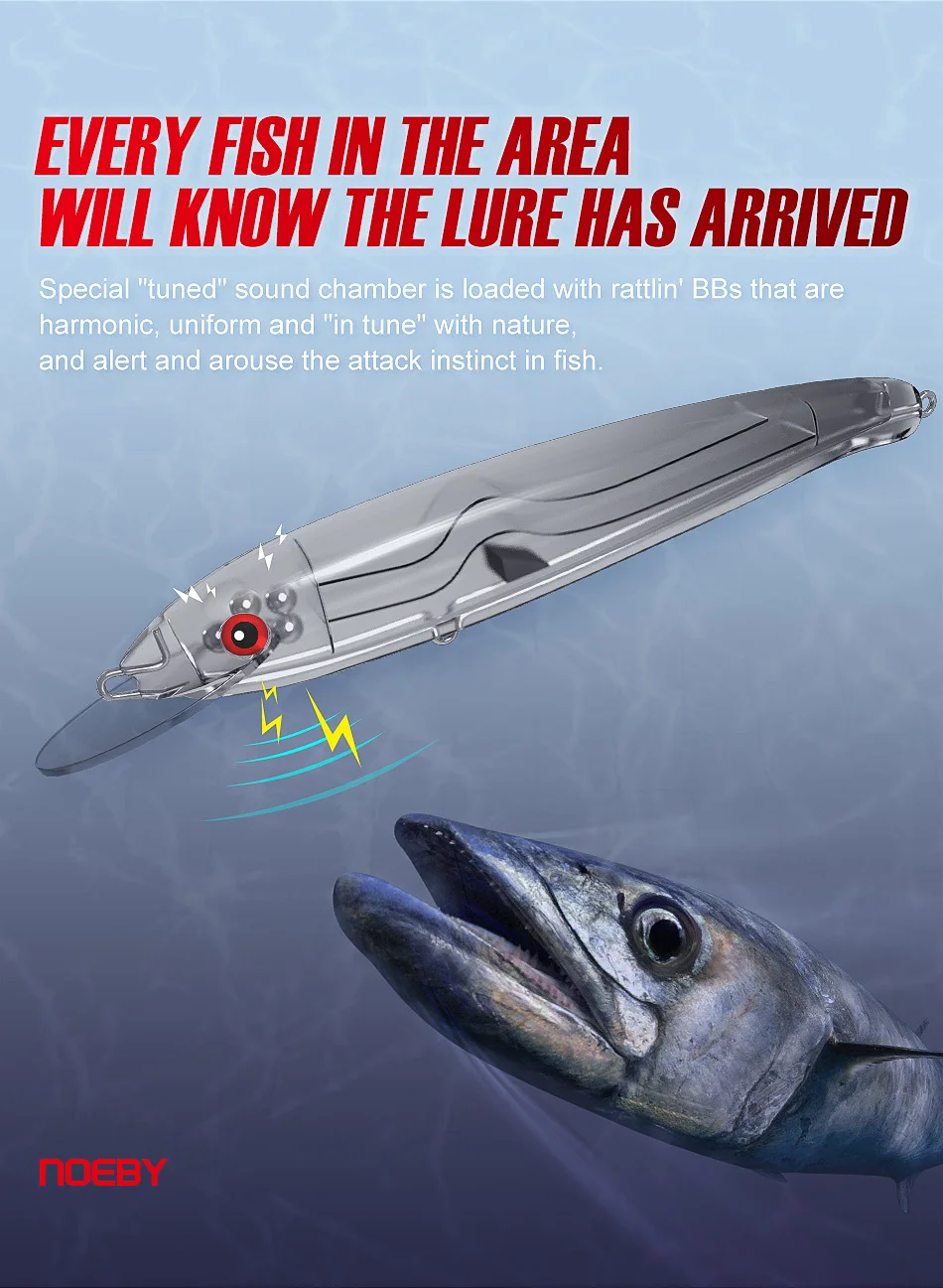 Noeby 3 uds flotante 0-3m Minnow 180mm 48g señuelo de pesca de agua superior cebo duro suspendido Wobbler anzuelos triples cebo Jerk