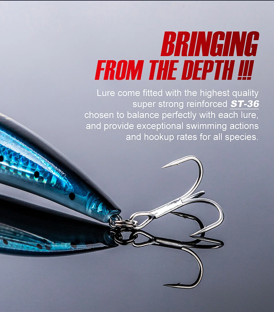 Escamas prominentes y línea lateral, lámina holográfica interna para un flash óptimo se combinan con el sistema interno de lanzamiento largo y ojos holográficos 3D para crear el señuelo de pesca definitivo.