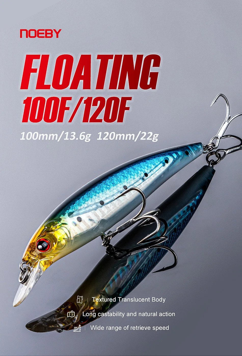 Noeby 3 uds Jerkbait Señuelos de pesca de pececillo flotantes 100mm 13,6g 120mm 22g Wobblers de fundición larga cebo Artificial para señuelo de pesca de mar de Lucio