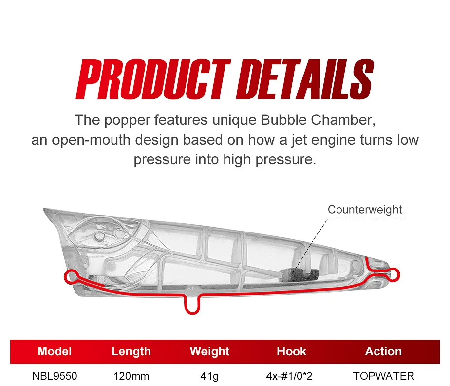 Noeby 3 uds Topwater Popper 12cm 41g flotante Rock pop cebos duros artificiales para lubina perca Lucio señuelo de pesca