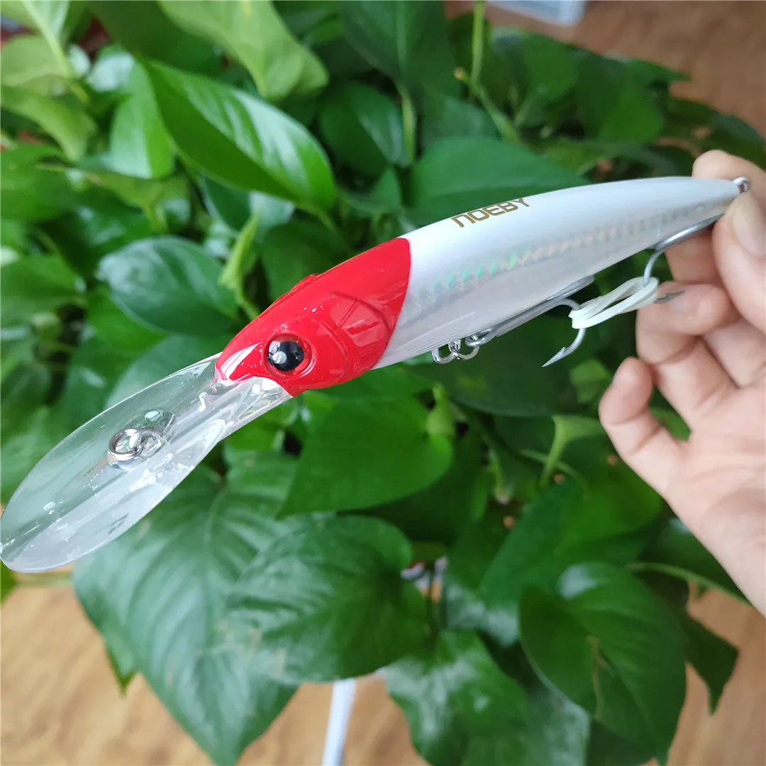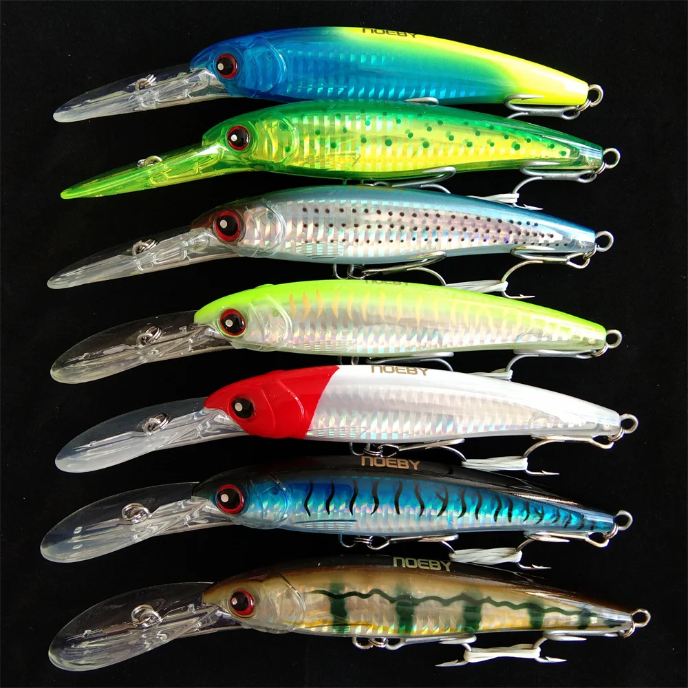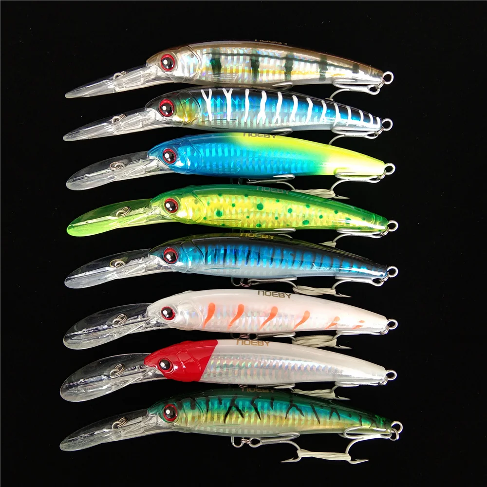 Noeby 4 Uds 12cm 32g flotante 5m Crankbait señuelo de pececillo de fundición larga cebo duro de curricán para Lucio Pesca de agua dulce y salada