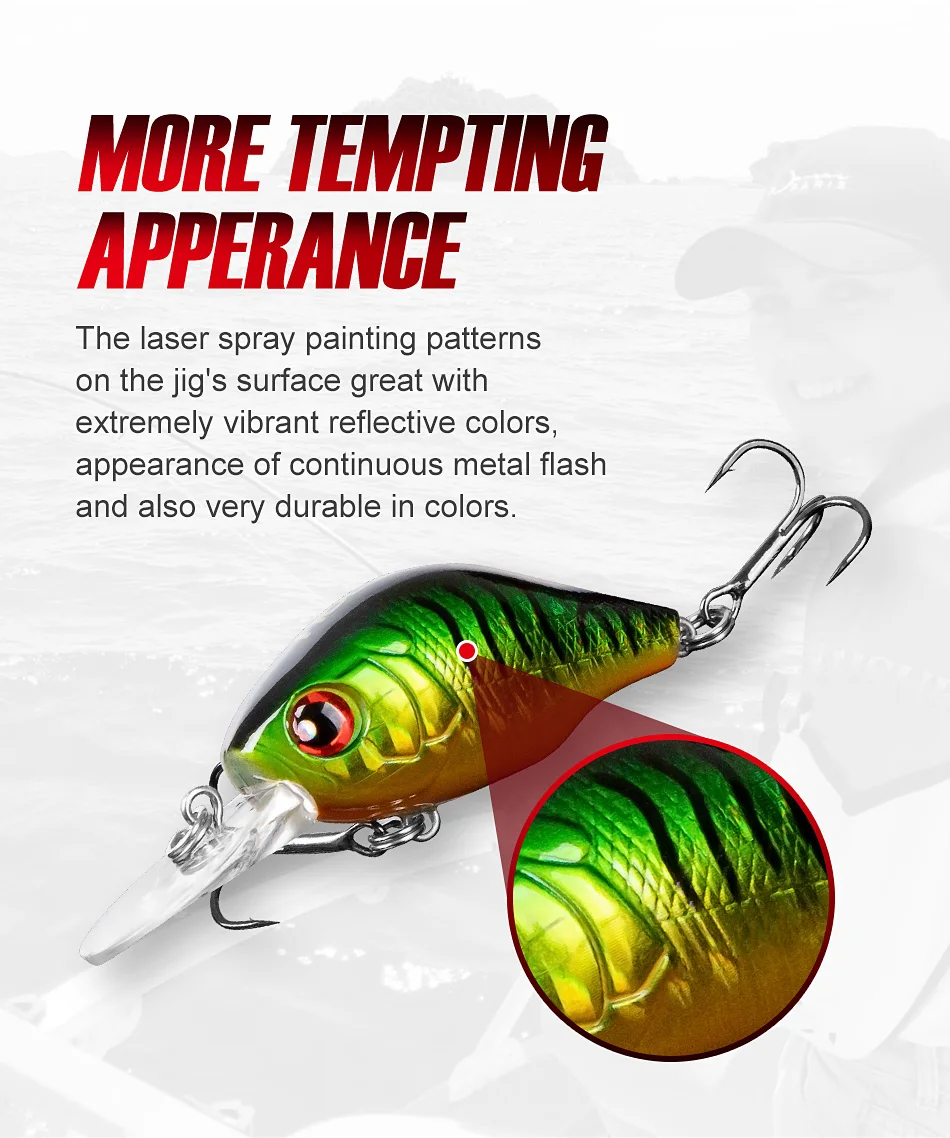 Classic Crank Bait:Creates more bite by wide wave motion and strengthened flashing effect.