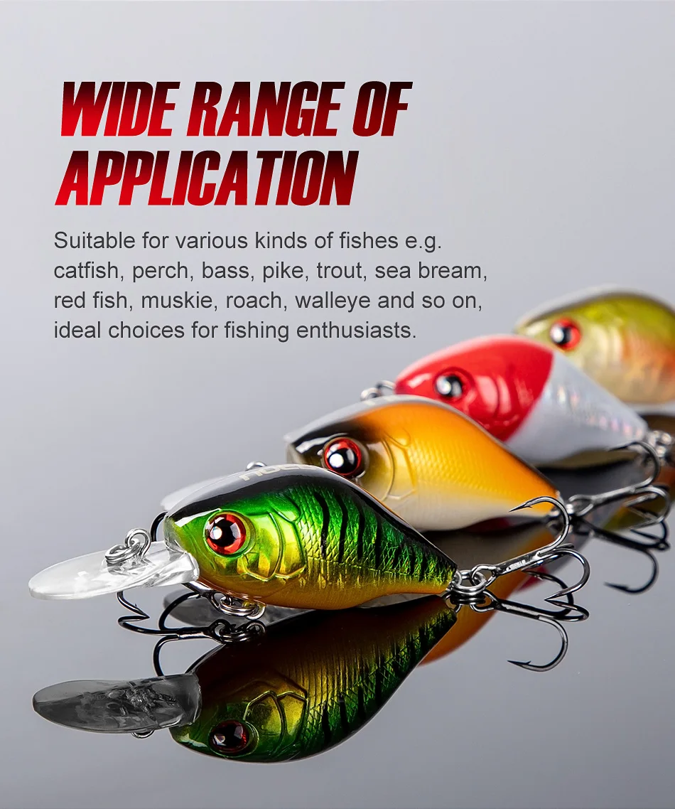 Suitable for various kinds of fishes e.g. catfish, perch, bass, pike, trout, sea bream, red fish, muskie, roach, walleye and so on, ideal choices for fishing enthusiasts.