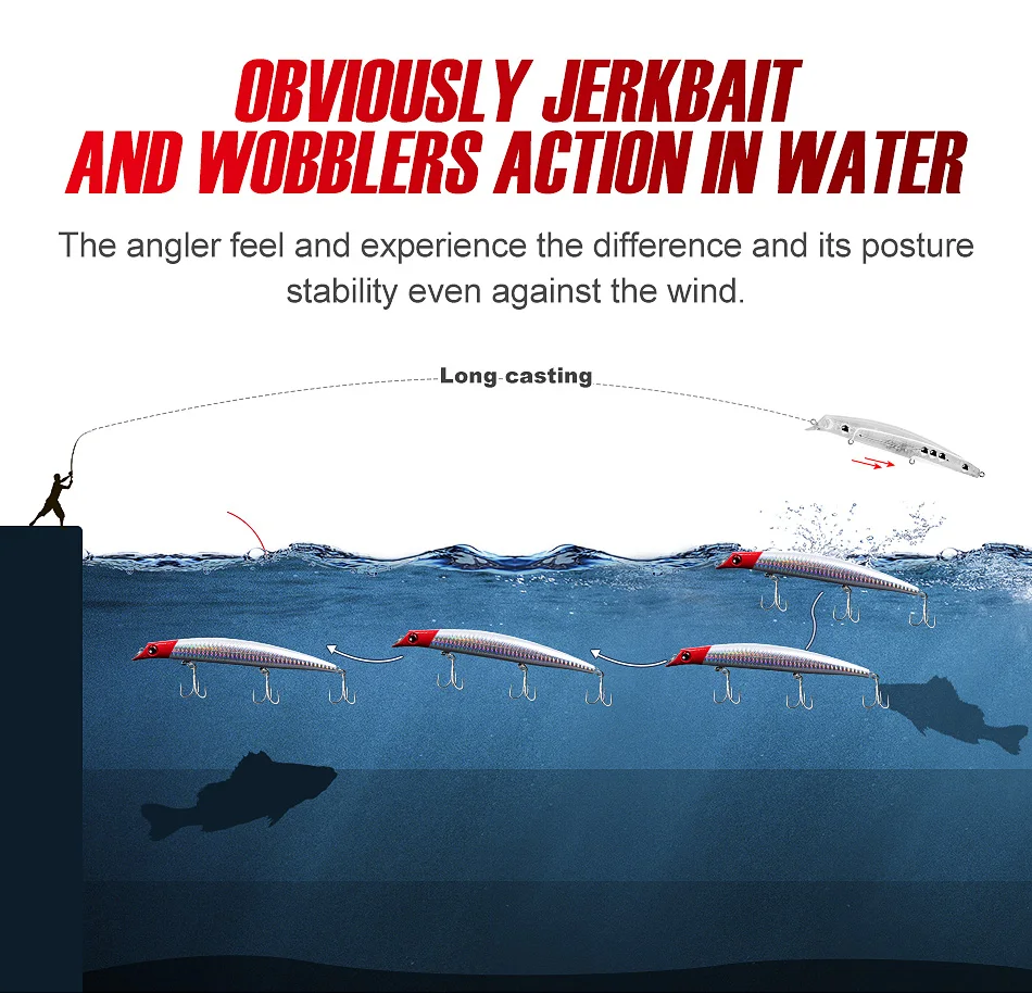 Noeby 8 Uds 12cm 16g flotador de mar 0-0,9 m señuelo de pesca Minnow cebos duros de agua salada para Lucio mar cebo Artificial aparejos