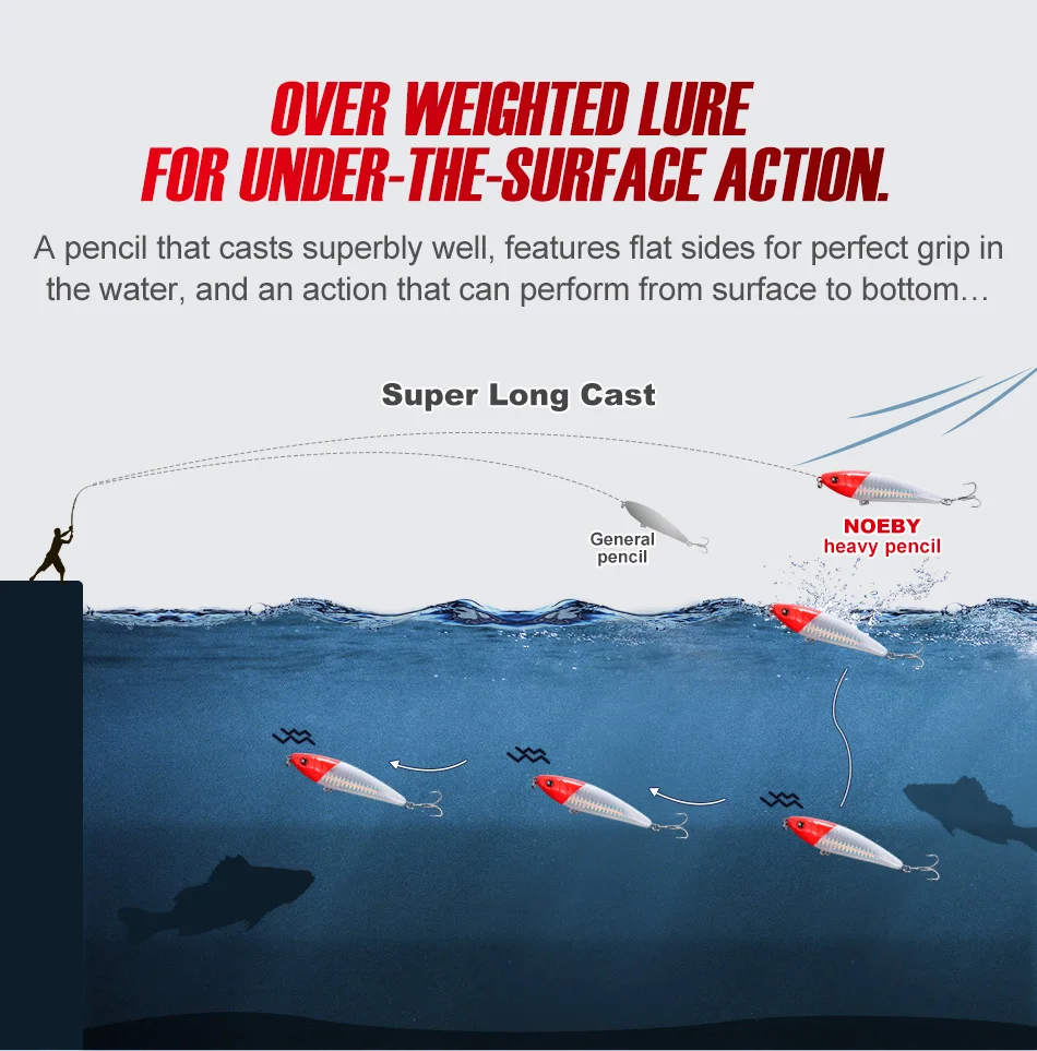 NOEBY 95S Stickbait Wobbler 95mm 25g hundimiento lápiz pesado señuelo de pesca agua salada cebo Artificial peces muertos caída Señuelos de Pesca