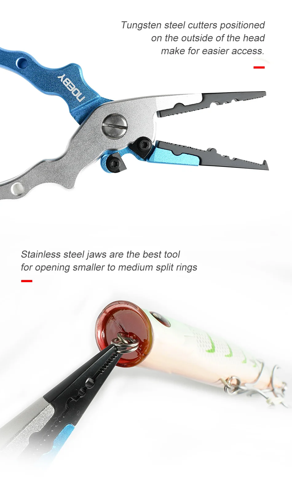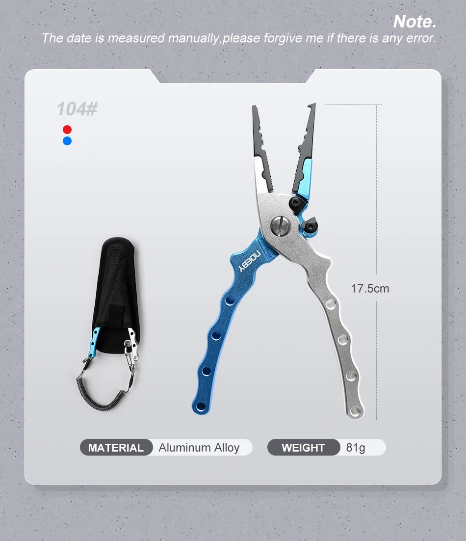 Alicates de pesca de acero inoxidable NOEBY, herramientas de pesca multifuncionales de 175mm/81g, alicates de gancho de hoja de acero de tungsteno, aparejos de pesca