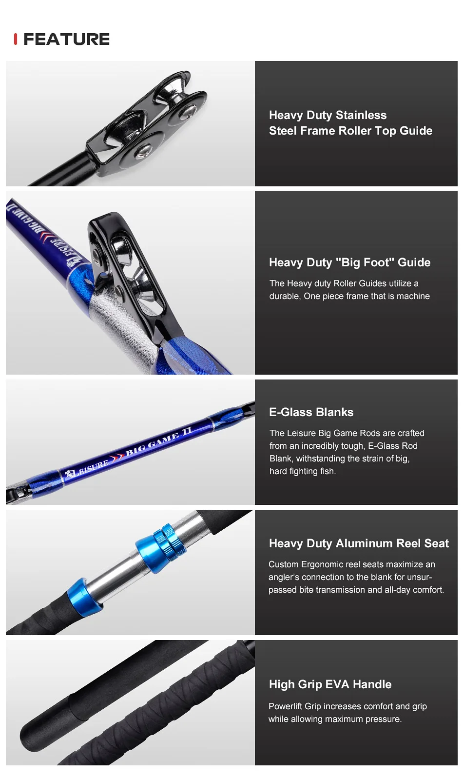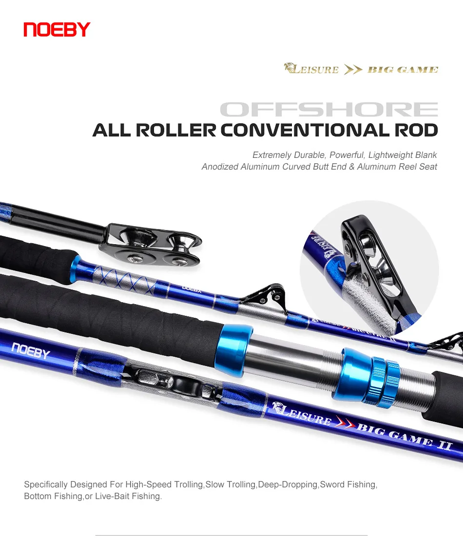 Ya sea detrás de un barco en movimiento o dando cuerda lentamente al pescar desde una posición estática, estas cañas resistirán la fuerza del agua y ayudarán a combatir contra peces más grandes.