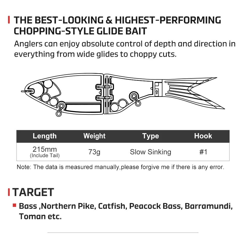 Noeby Amata Glide Swimbait señuelo suave 215mm 73g Wobblers de silicona de hundimiento lento para Lucio Bass Shad Glide Swimbait Señuelos de pesca