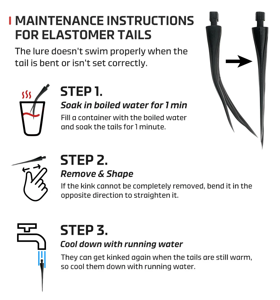 El señuelo no nade correctamente cuando la cola está doblada o no está fijada correctamente.