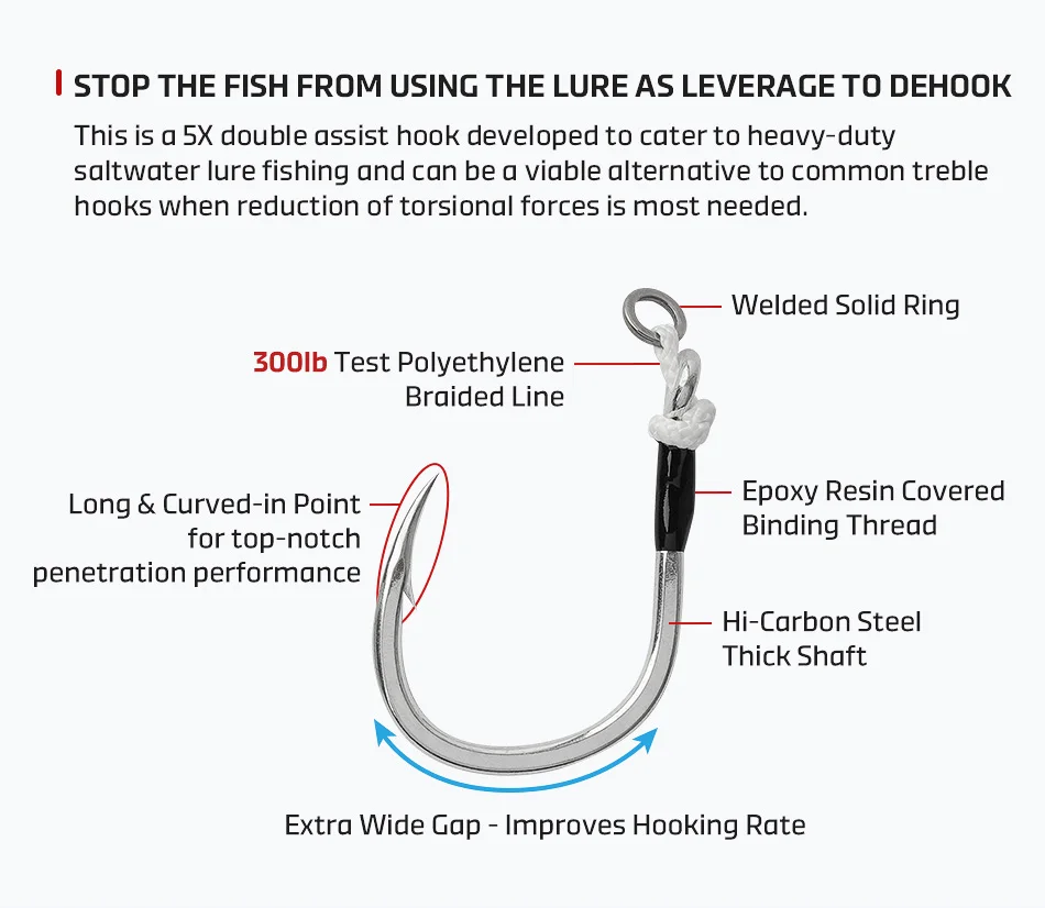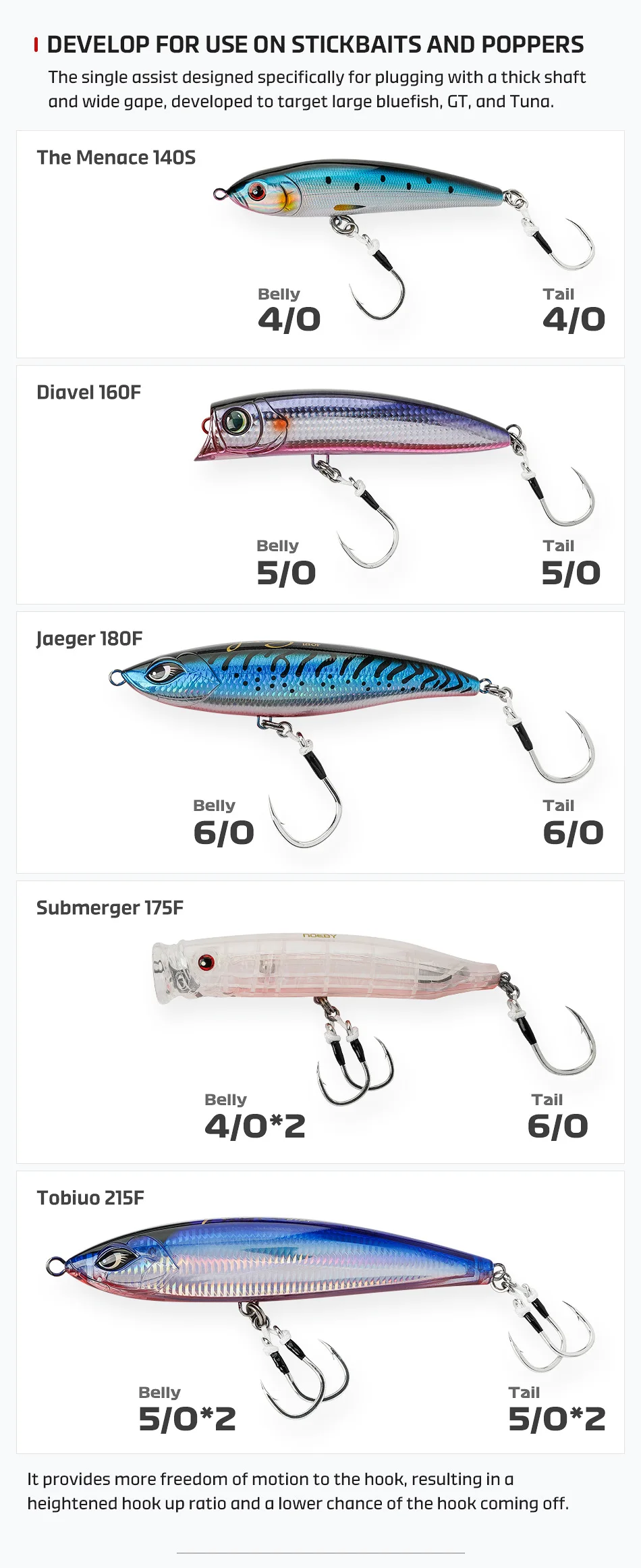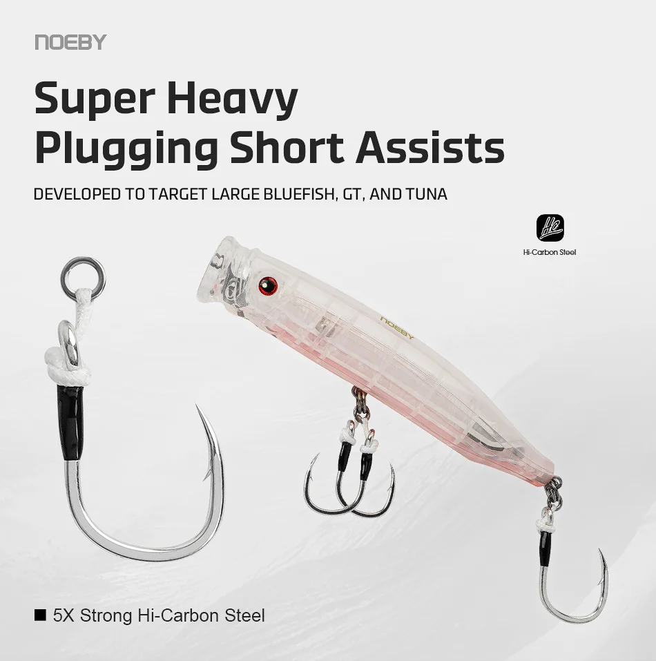 NOEBY enchufado en línea gancho de asistencia única 5X anzuelos de pesca 4/0 5/0 6/0 7/0 anzuelos de señuelo gran juego de agua salada atún GT aparejos de pesca