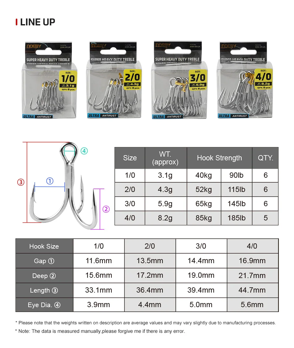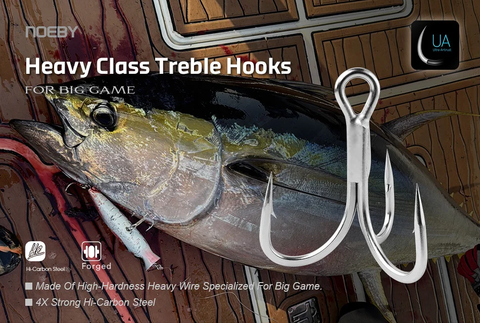 NOEBY anzuelo triple de clase pesada 1/0 2/0 3/0 4/0 aparejos de pesca de gran juego 6066 4X anzuelo de pesca de tiburón forjado antioxidante de acero al carbono alto