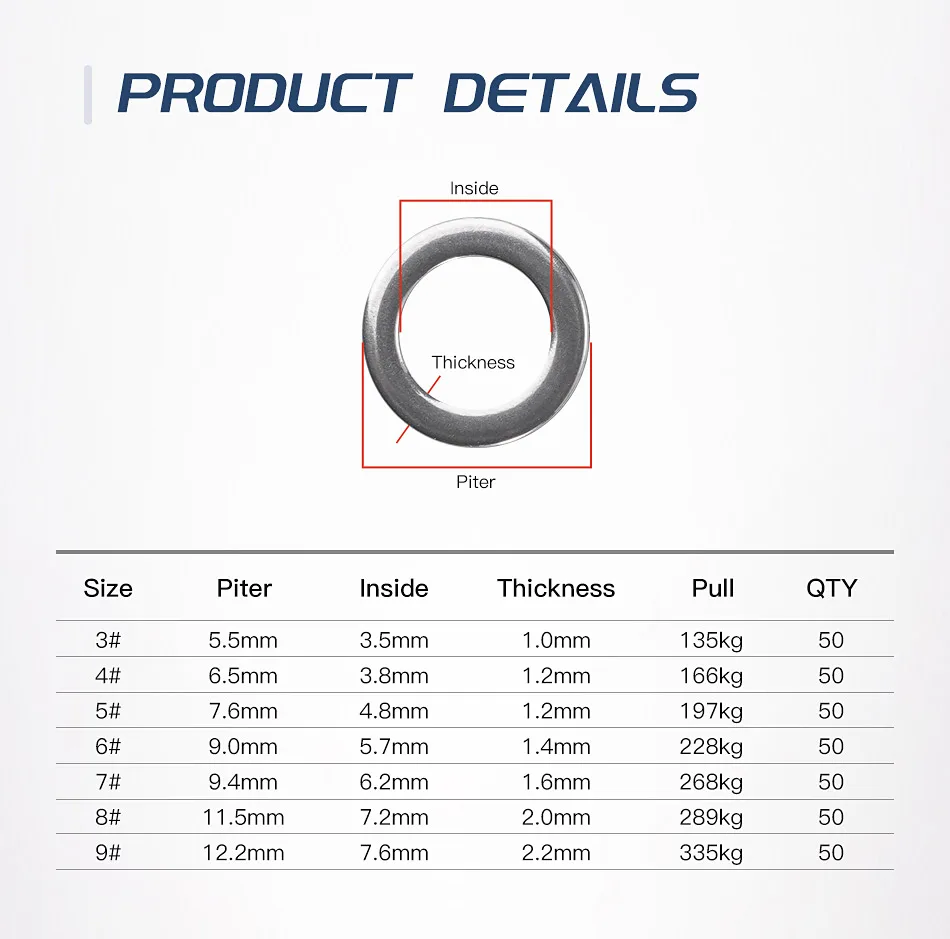 Anillo sólido súper resistente, ideal para conectar anzuelos a grandes señuelos de agua salada.