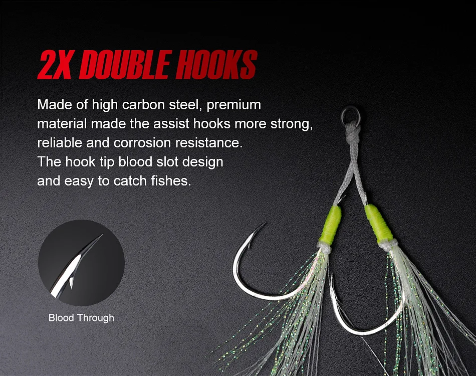 NOEBY Jig Hooks Pesca Jigging lento Twin Assist Hook Tamaño 1/0-6/0 para Jig de metal Anillo sólido Jigging Ganchos dobles en agua salada