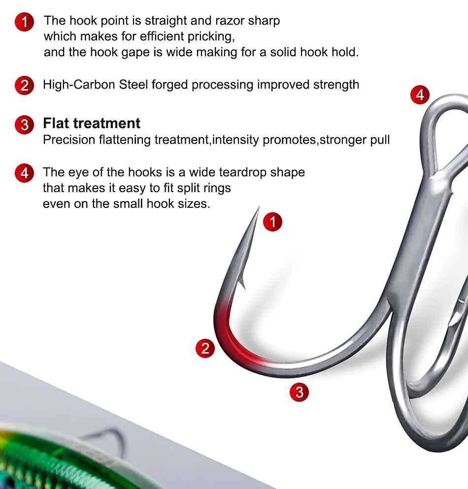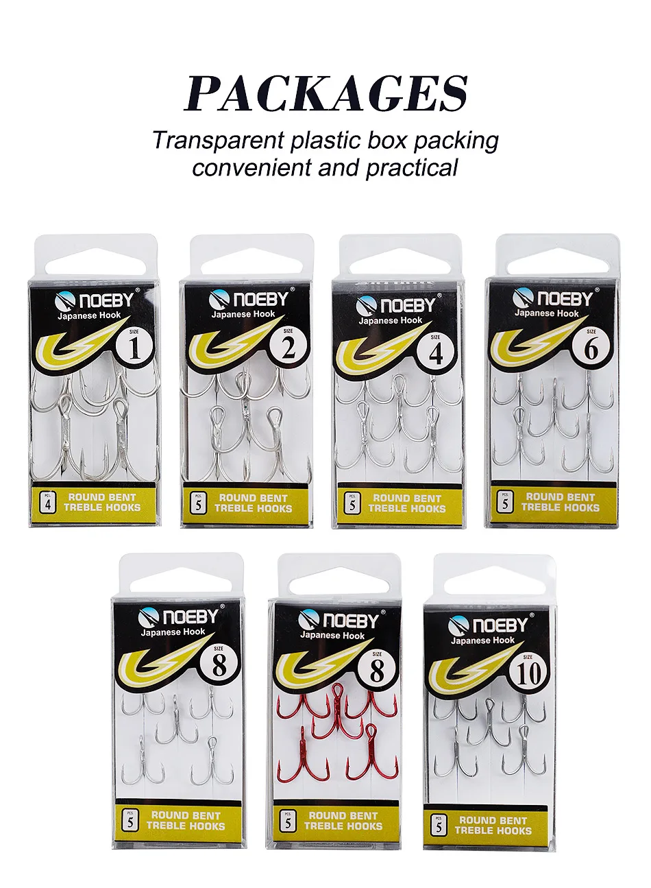Noeby 3X anzuelos de pesca triples 1 #2 #4 #6 #8 #10 # acero de alto carbono Bass Pike anzuelo de pesca de agua salada aparejos