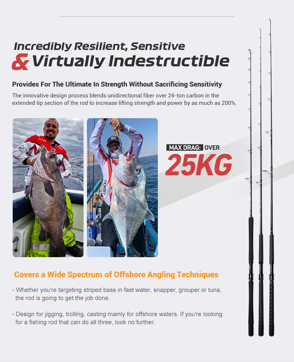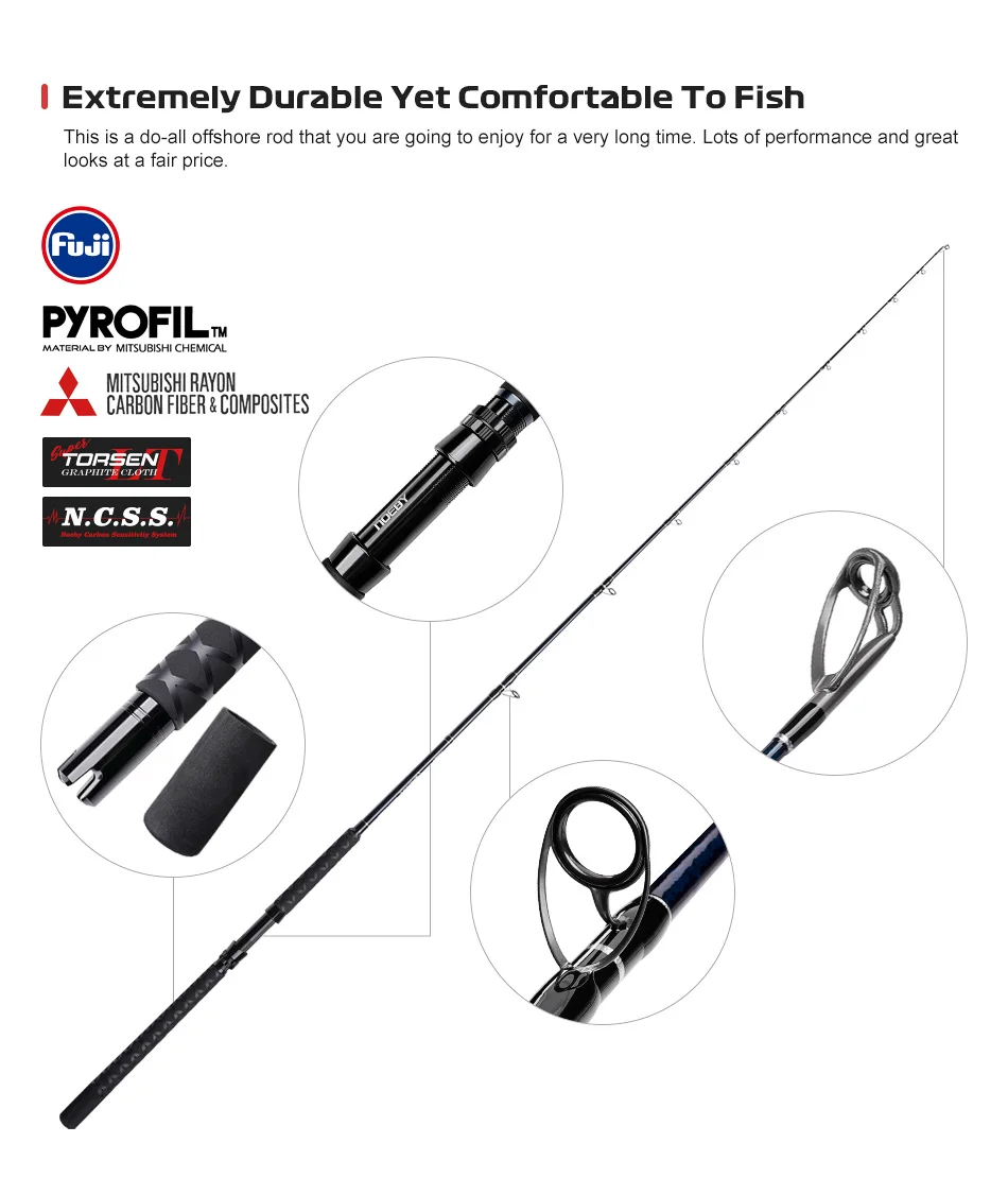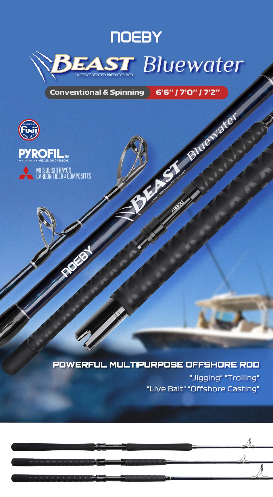 Noeby Beast Caña de pescar giratoria convencional, barco pirofil Fuji de atún en alta mar, caña de pescar de agua salada, 1,98 m, juego grande