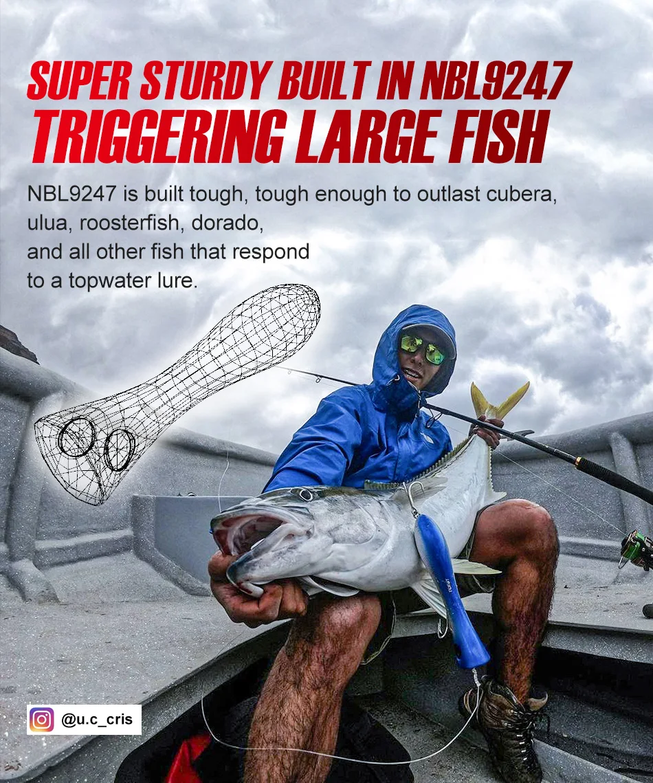 NBL 9247 está construido de forma resistente, lo suficientemente resistente como para durar más que Cubera, isiones, roosterfish, dorado y todos los demás peces que responden a un señuelo de superficie.