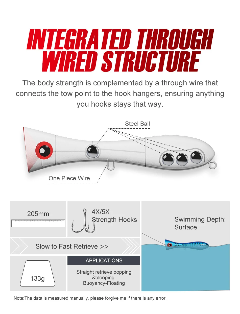 Su diseño pesado y su forma aerodinámica garantizan que su señuelo se lance a larga distancia y se acerque a la estructura y los trabajadores donde se alimentan grandes especies de peces pelágicos.
