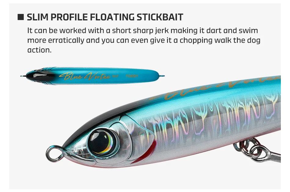NOEBY Blue Vortex Stickbait 160mm 46g lápiz flotante acción rodante cebo duro Artificial agua salada atún GT señuelo de pesca