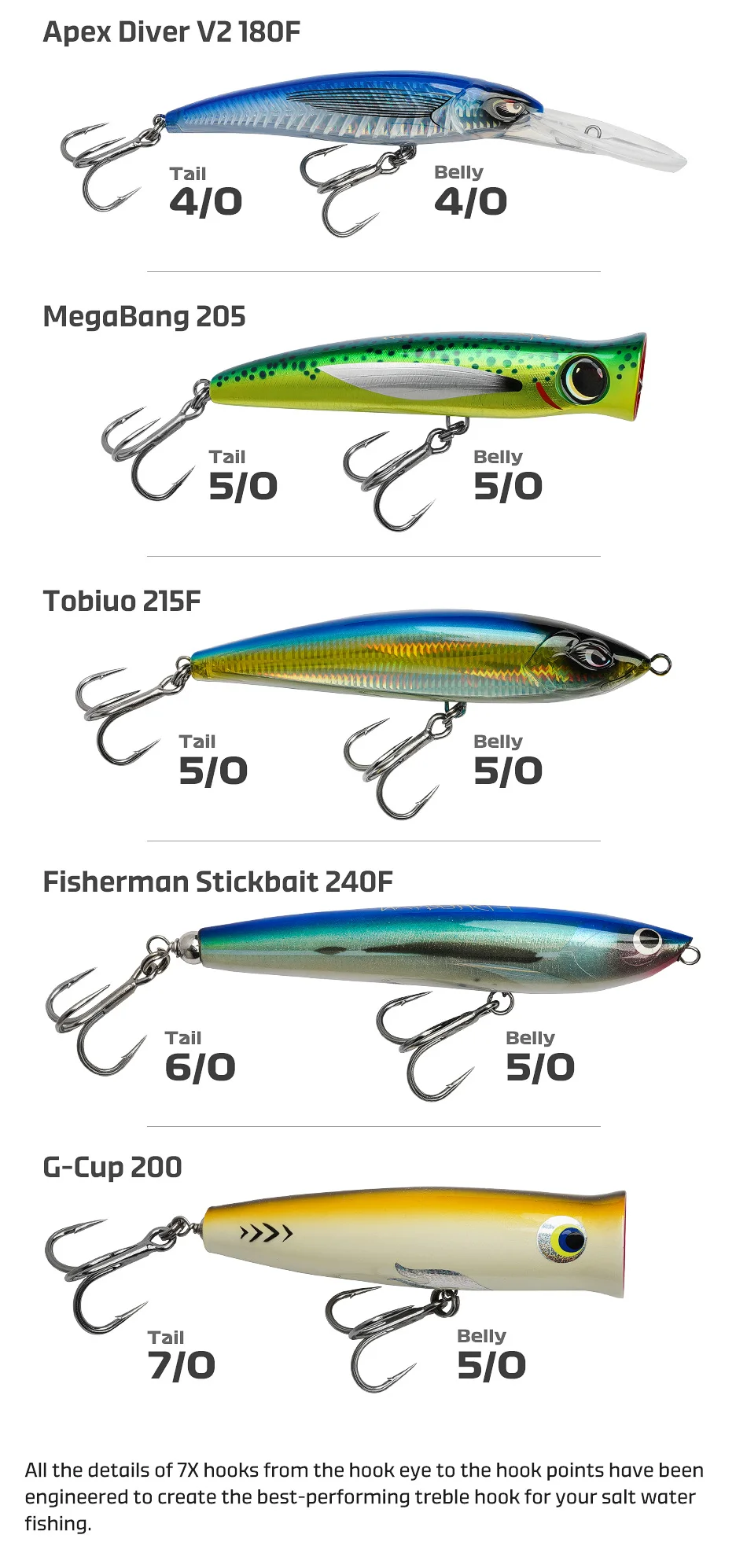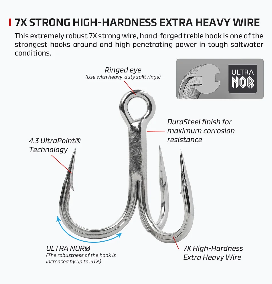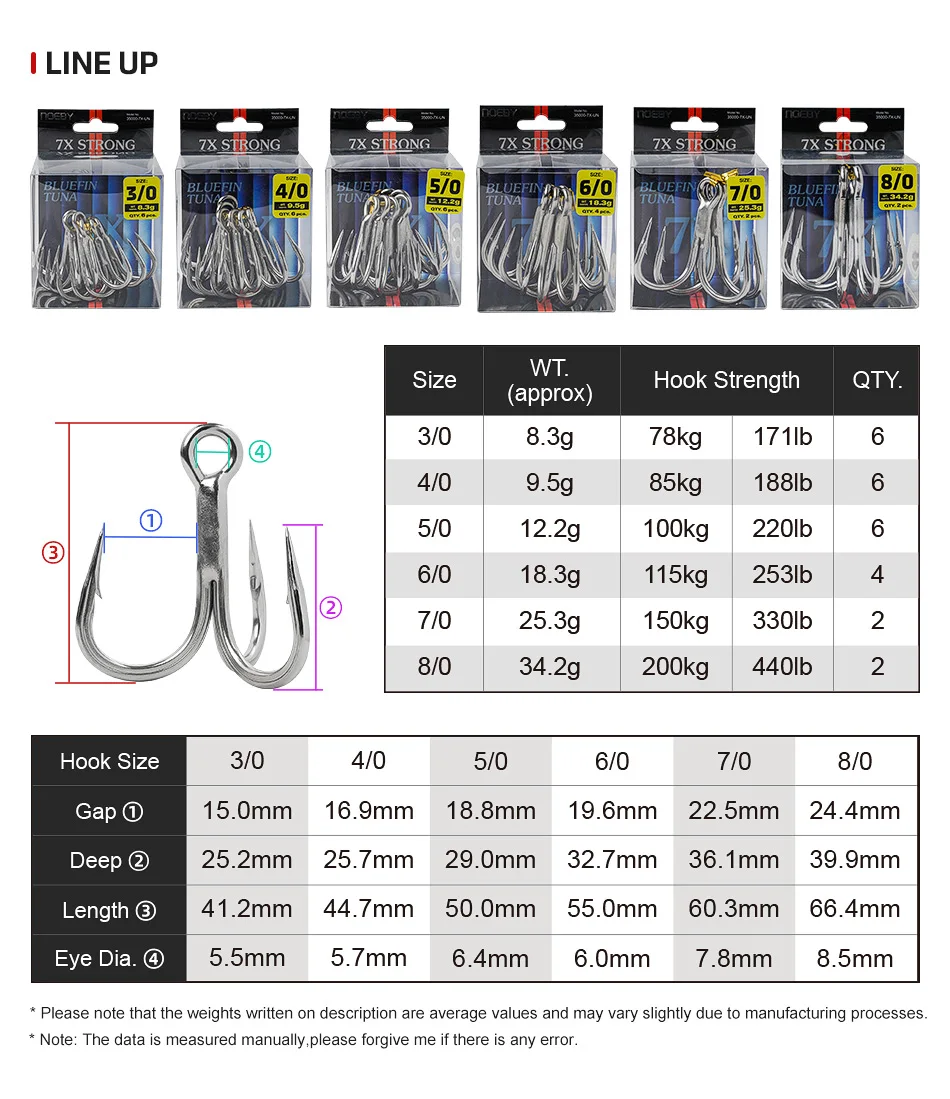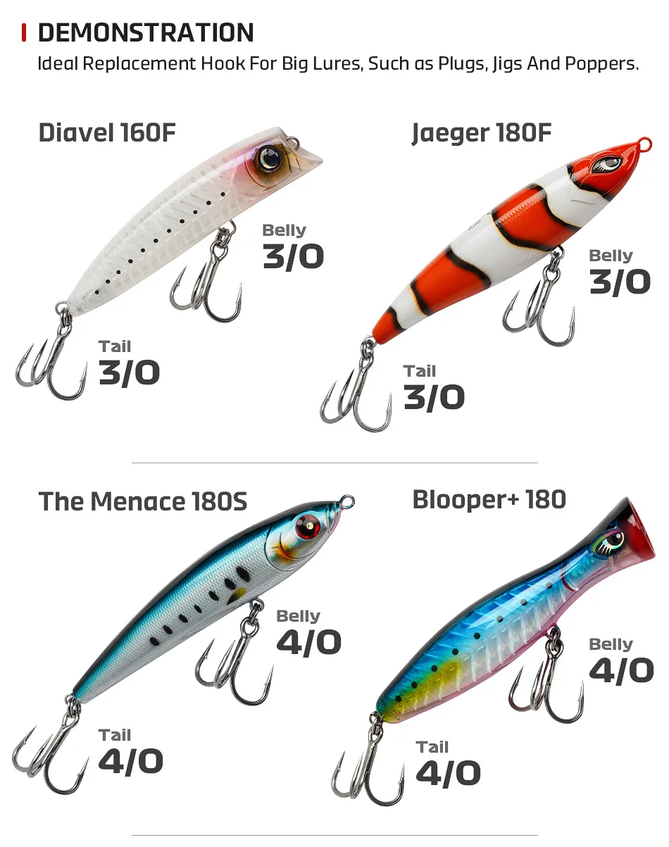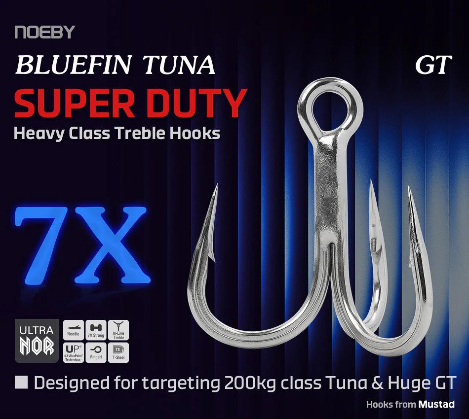 NOEBY Bluefin Tuna Super Duty Heavy Class Triple Ganchos 7X Max Drag 200kg Mustad Tuna Hook 3/0 4/0 6/0 7/0 8/0 Gancho de juego grande