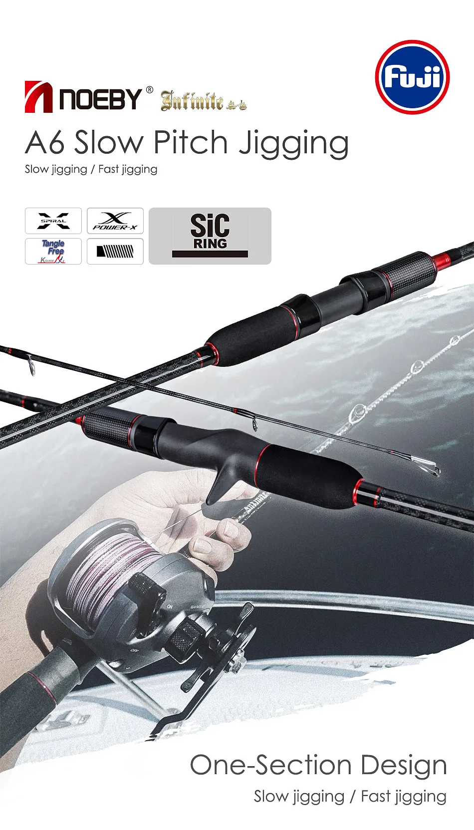 Caña de jigging lenta de NOEBY, 1,91m, 1,96m, anillo Fuji SIC, peso de señuelo, 350g, caña de jigging rápida de fundición de carbono para cañas de pescar de mar