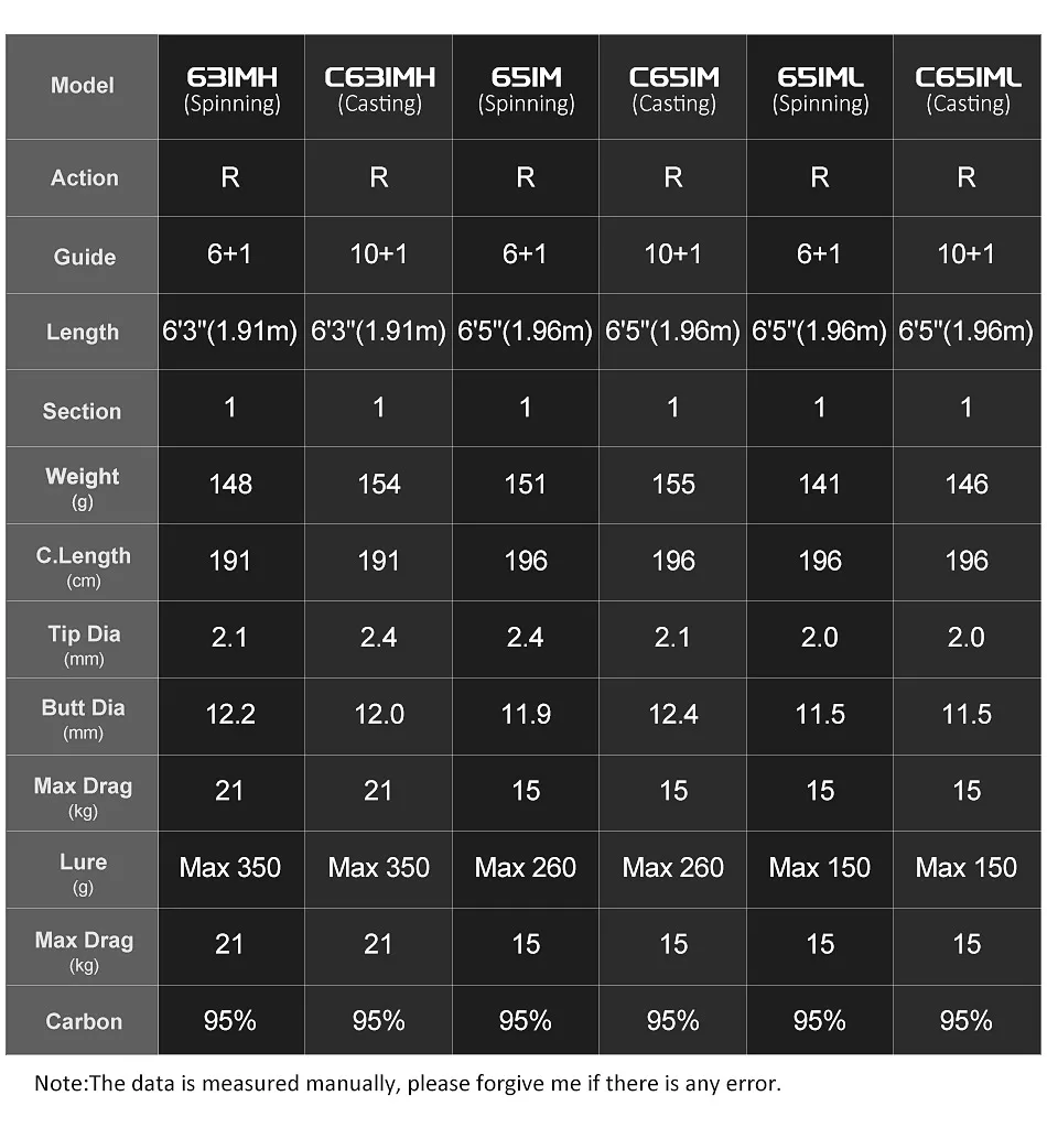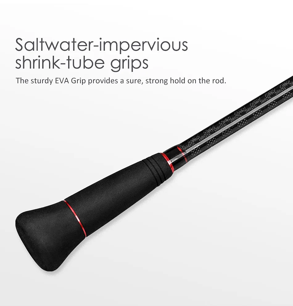 Una curvatura suave se forma desde la punta hasta los numerosos puntos de apoyo hasta el agarre, lo que permite a los pescadores controlar la plantilla/señuelo en consecuencia bajo el agua.