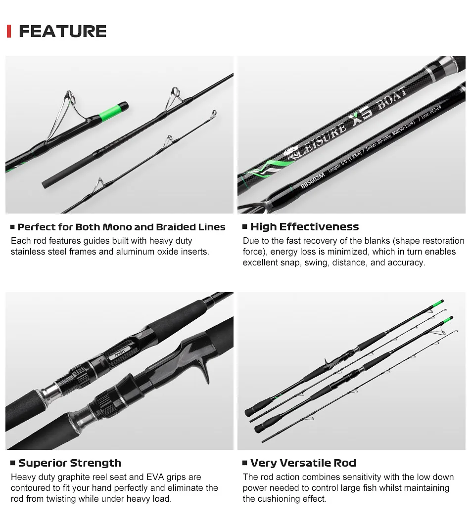 Ideal para la pesca deportiva en el fondo del descenso, así como para pescar señuelos en la deriva sobre los desechos de arrecife.