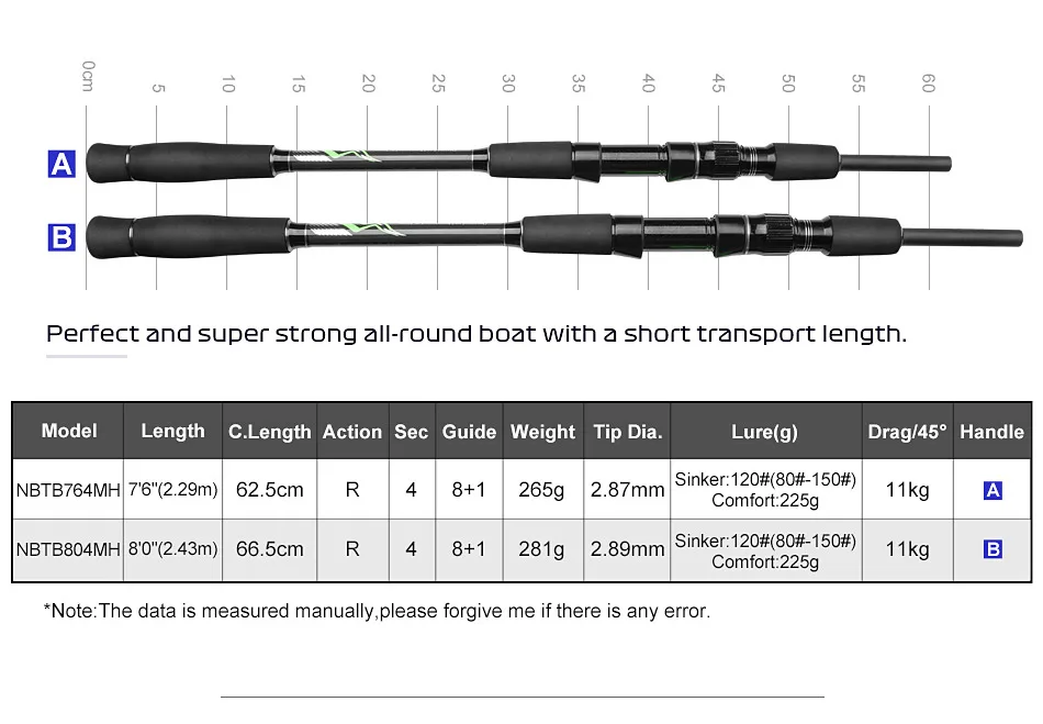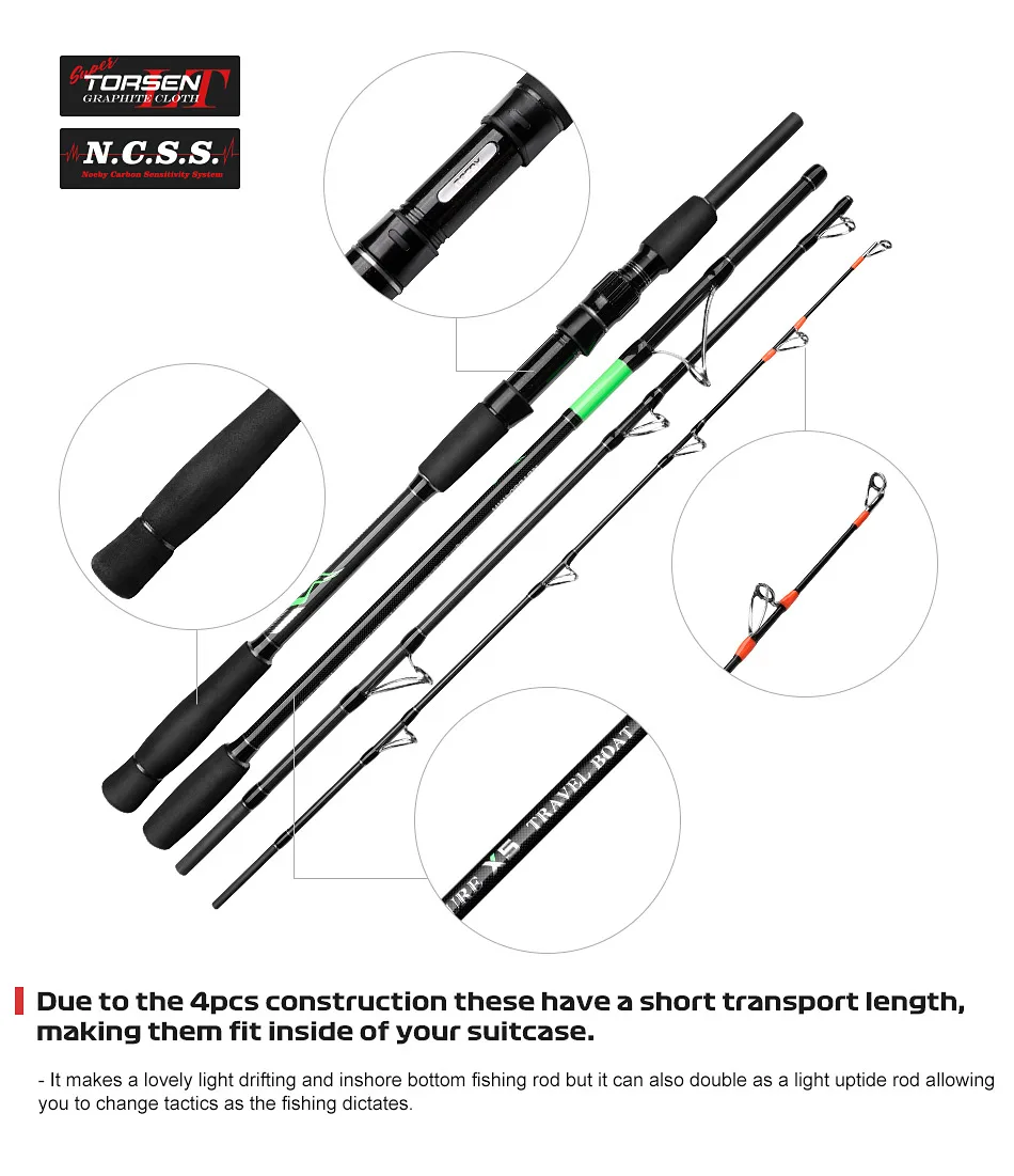 Canna de pescar para barco de viaje de NOEBY, 4 secciones, 2,29m, 2.43m MH, Drag, 11kg, caña de pescar versátil para barco, juego grande, cañas de pescar giratorias de mar