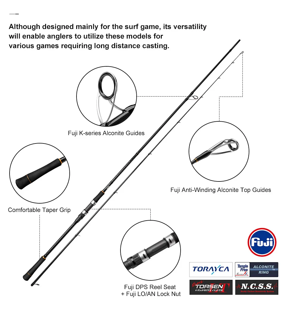 Noeby Surf Rod Shore Casting Cañas de pescar 3,05 M 3,2 m 10-45G 20-70g Peso del señuelo H MH Fuji Guide DPS Seabass Flatfish Caña de pescar