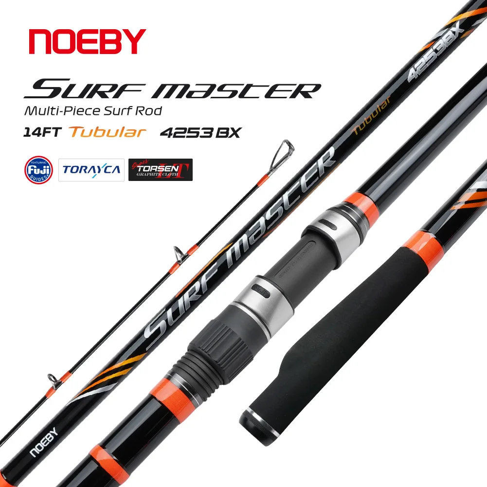 Caña de pescar de lanzamiento de Surf de NOEBY, caña de pescar tubular de carbono de 4,25m, guía Fuji de 3 secciones, asiento de carrete DPS, caña de pescar de fundición larga de 100-250g