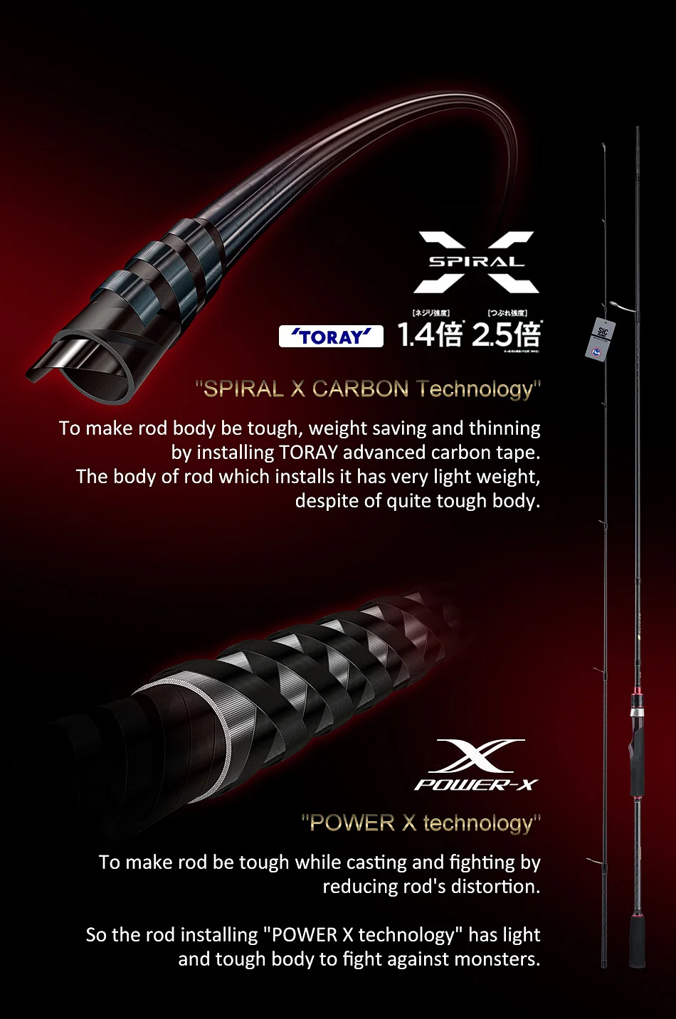 Así que la caña que instala la tecnología "POWER X" tiene un cuerpo ligero y resistente para luchar contra los monstruos.