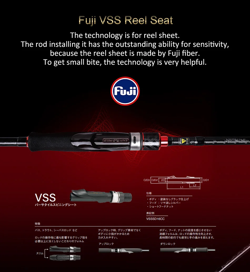 La tecnología es para la hoja del carrete. La varilla que lo instala tiene una excelente capacidad de sensibilidad, porque la hoja del carrete está hecha de fibra Fuji. Para obtener una pequeña mordida, la tecnología es muy útil.