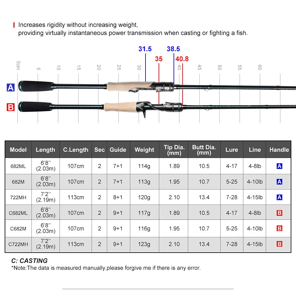 Noeby caña de pescar giratoria, cañas de fundición de gusano, caña de pescar Fuji Toray de agua dulce, señuelo sensible para lubina, caña de pescar