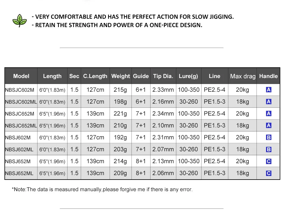 Noeby K7 caña de pescar Jigging de paso lento 1,83 m 30-350 g peso del señuelo 20 kg caña de pescar de agua salada