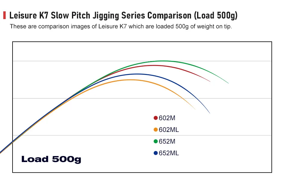 Comparación de series de jigging de tono lento K7 de ocio (carga 500 g).