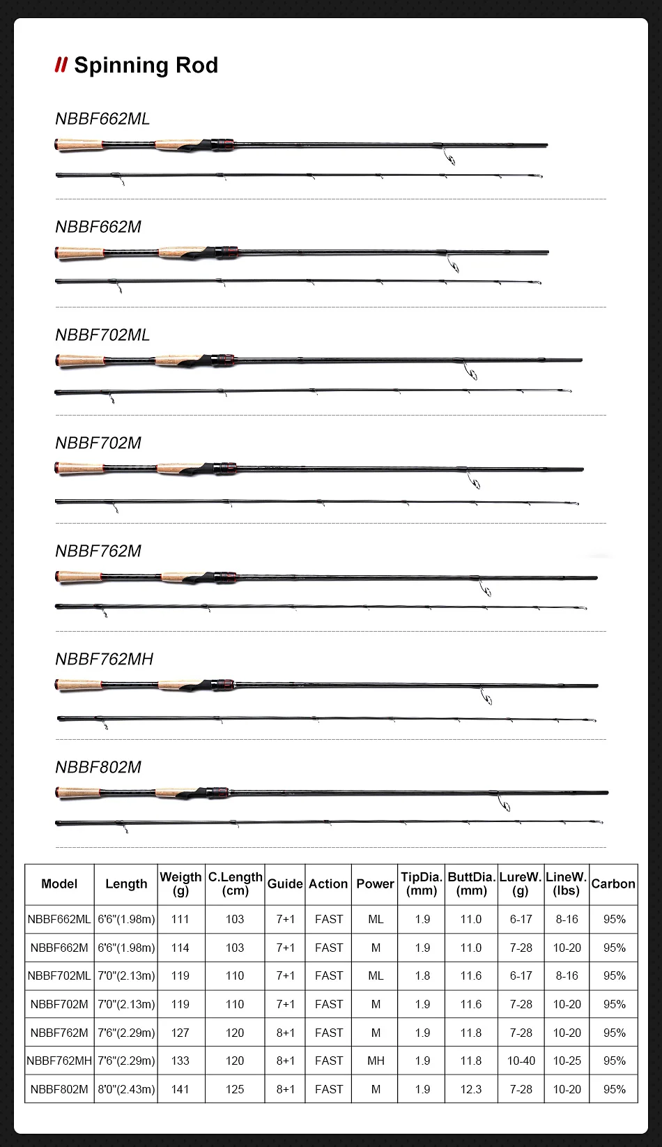 Noeby caña de pescar señuelo 1,98m 2,13m 2,29m 2,43m Spinning ML M MH 6-40g caña de lanzar peso señuelo para cañas de pescar de agua dulce de Lucio