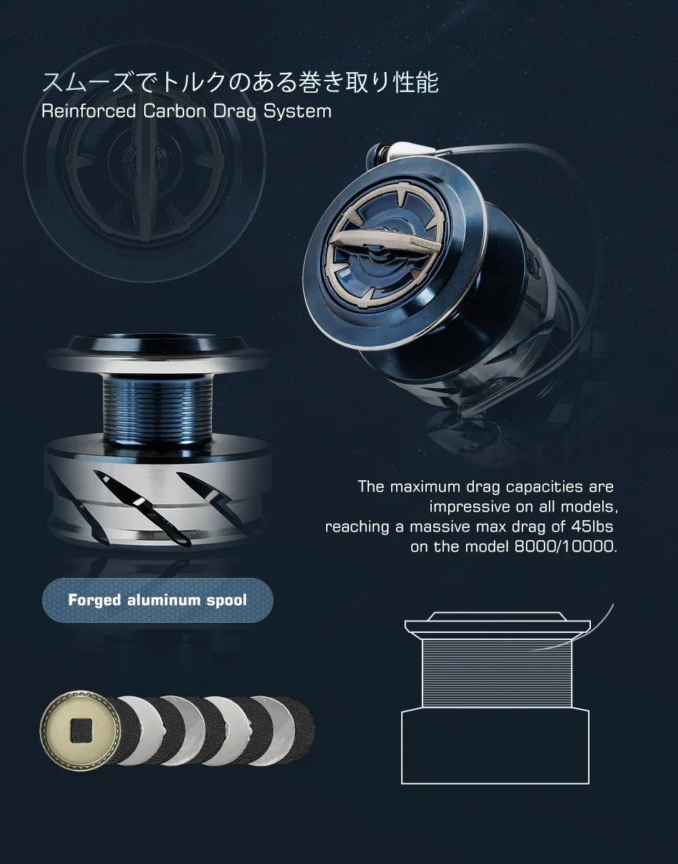 Carrete de pesca giratorio Noeby Infinite SW 2500 3000 4000 5000 8000 10000 Max Drag 45lb 20kg carrete de fundición larga carrete de pesca de agua salada