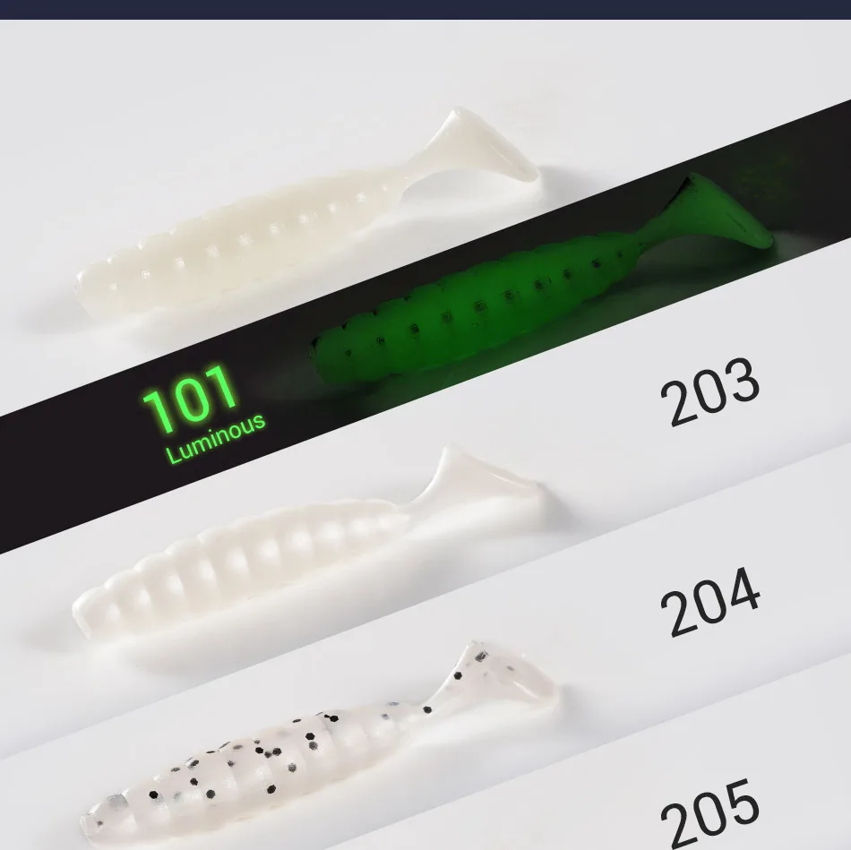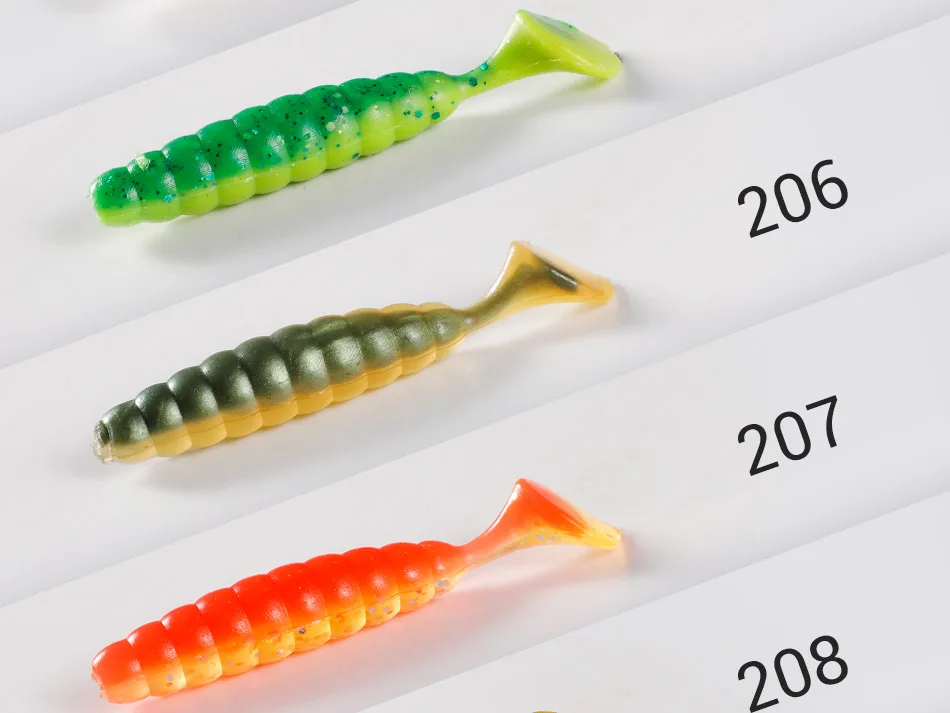 Buen pez de silicona, del tamaño de un dedo meñique.