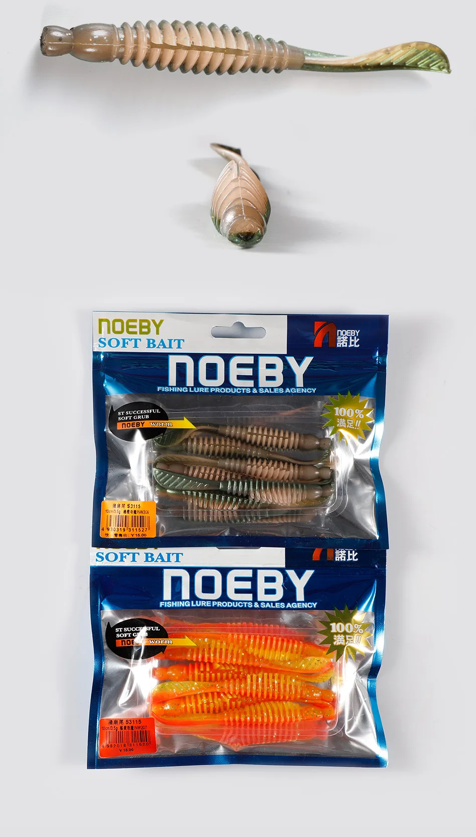 NOEBY-Cebo blando acanalado, cebos de silicona, cabeza Shakey, Jig Swimbait, Señuelos de Pesca de agua salada, criatura, 10cm, 3,5g,6 piezas