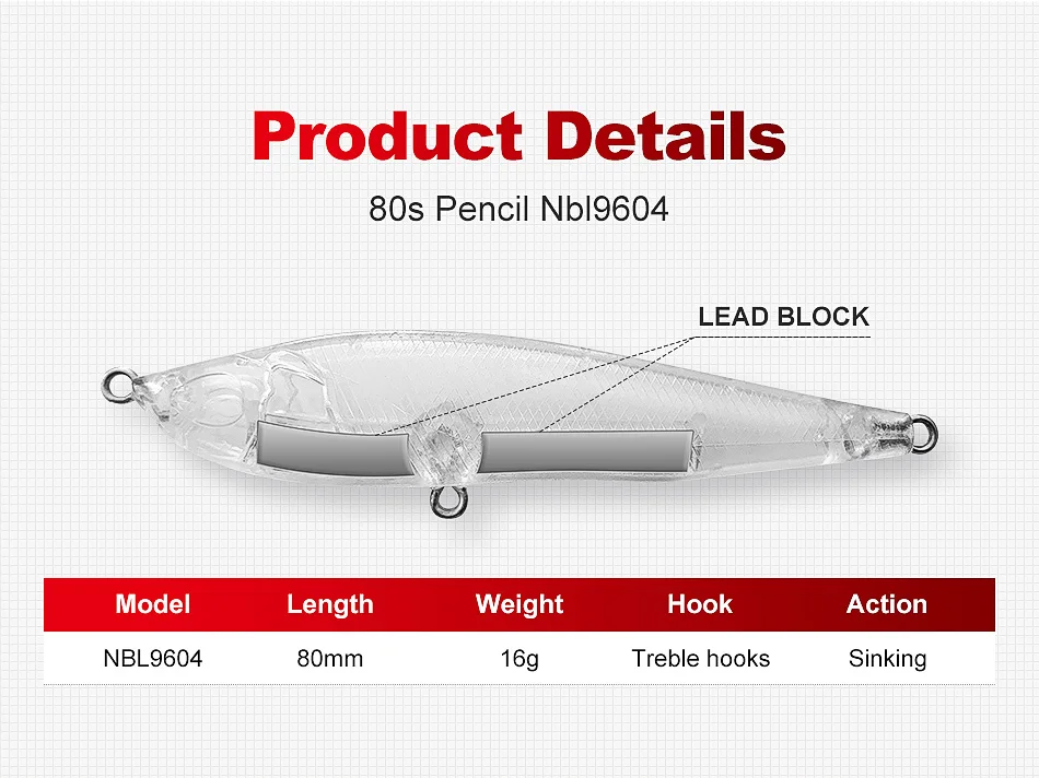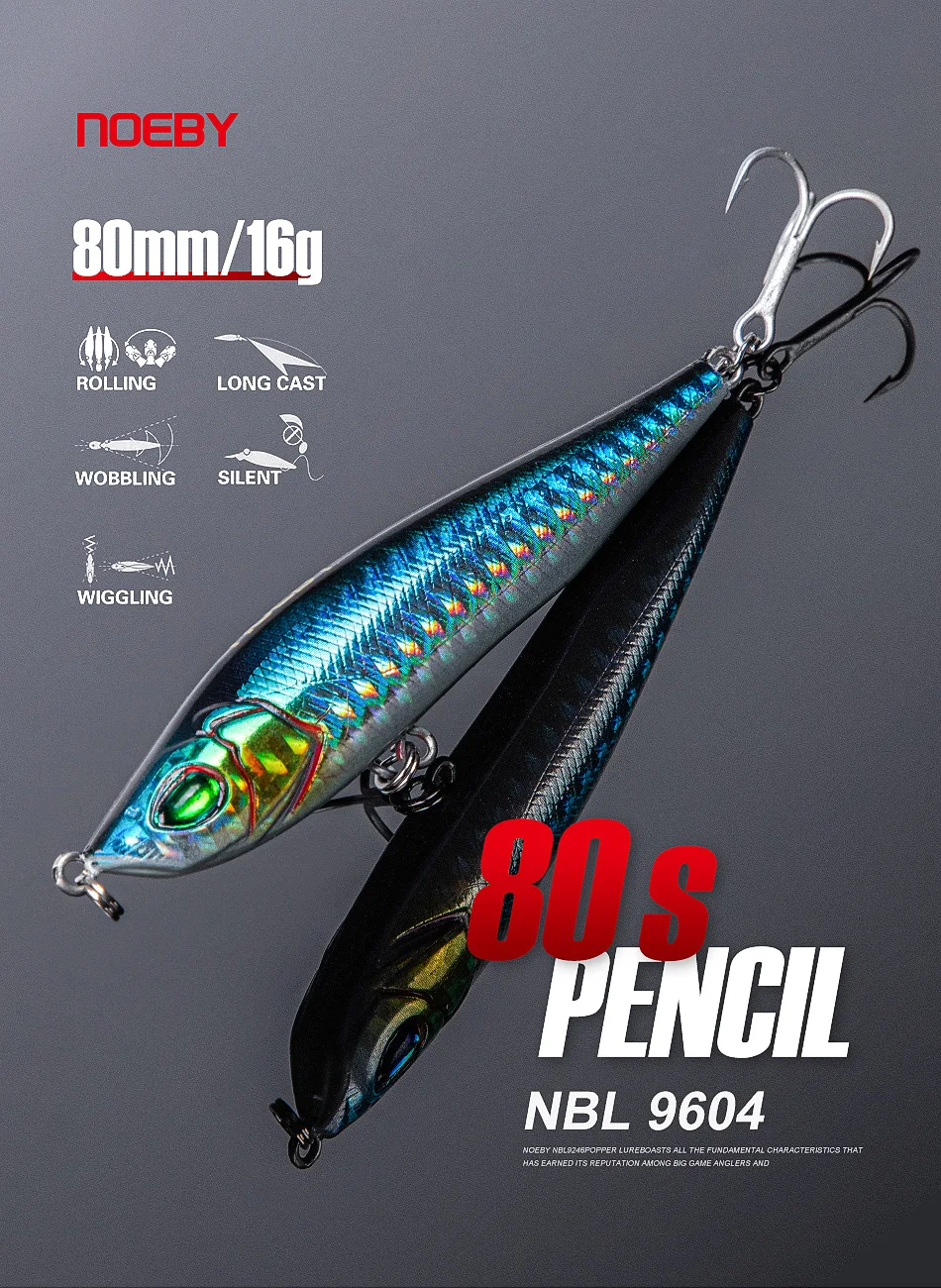 Noeby-cebo duro artificial para pesca de lubina, wobblers, 80mm, 16G, fundición larga, lápiz que se hunde, Swimbait