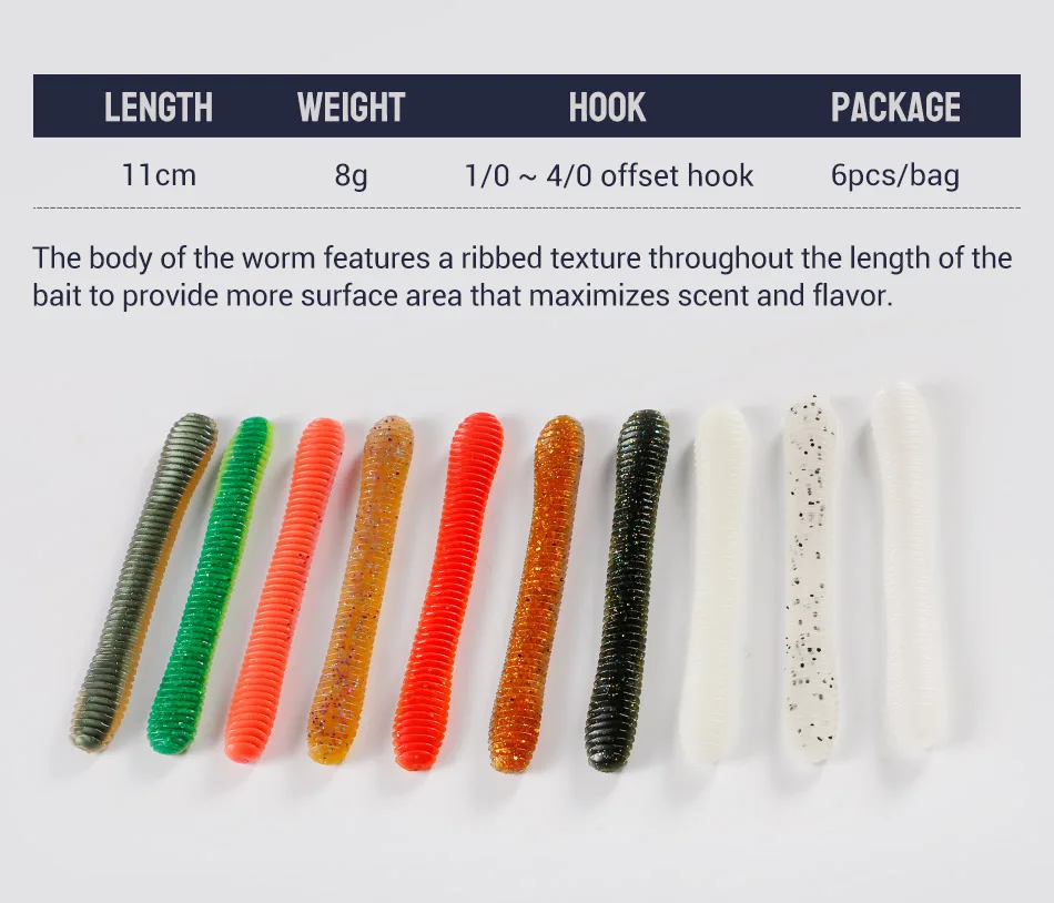 NOEBY-Cebo de gusano suave de silicona con cabeza de plantilla, cebos artificiales, aparejo de Texas, Swimbait para pesca de lubina, gusano de palo gordo, 11cm, 8g