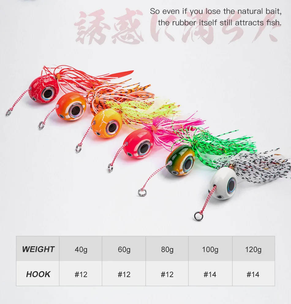 Noeby Tenya Kabura Jig Bait 40g 60g 80g 100g 120g Jig head con falda de goma que brilla para pargo mero barco señuelo de pesca de agua salada
