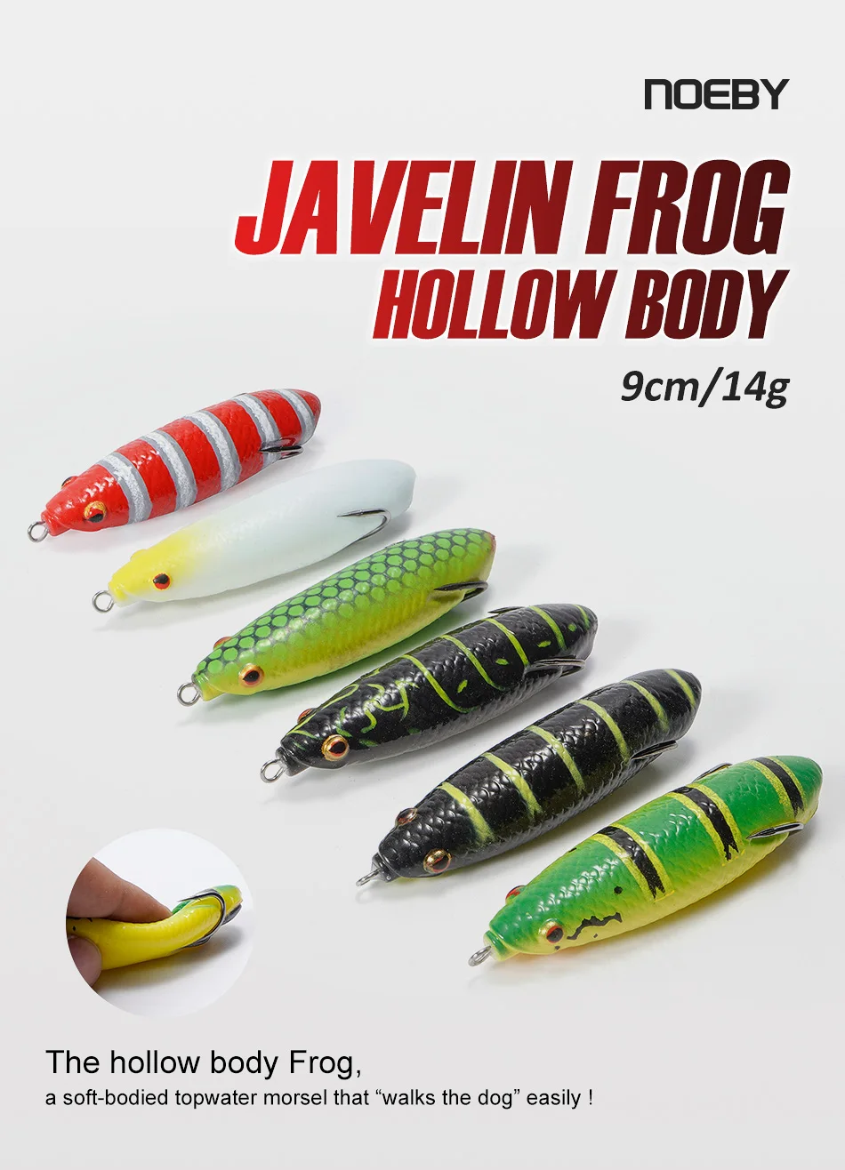 NOEBY jabelín Rana cebo de silicona 90mm 14g señuelo de pesca Topwater perro caminando cuerpo hueco cebos artificiales blandos luminosos