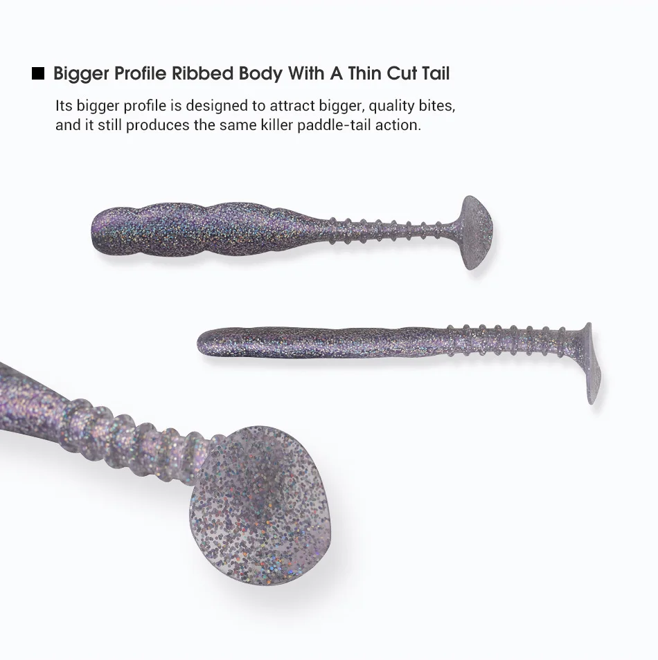 Su perfil más grande está diseñado para atraer mordeduras más grandes y de calidad y aún produce la misma acción matadora de cola de remo.