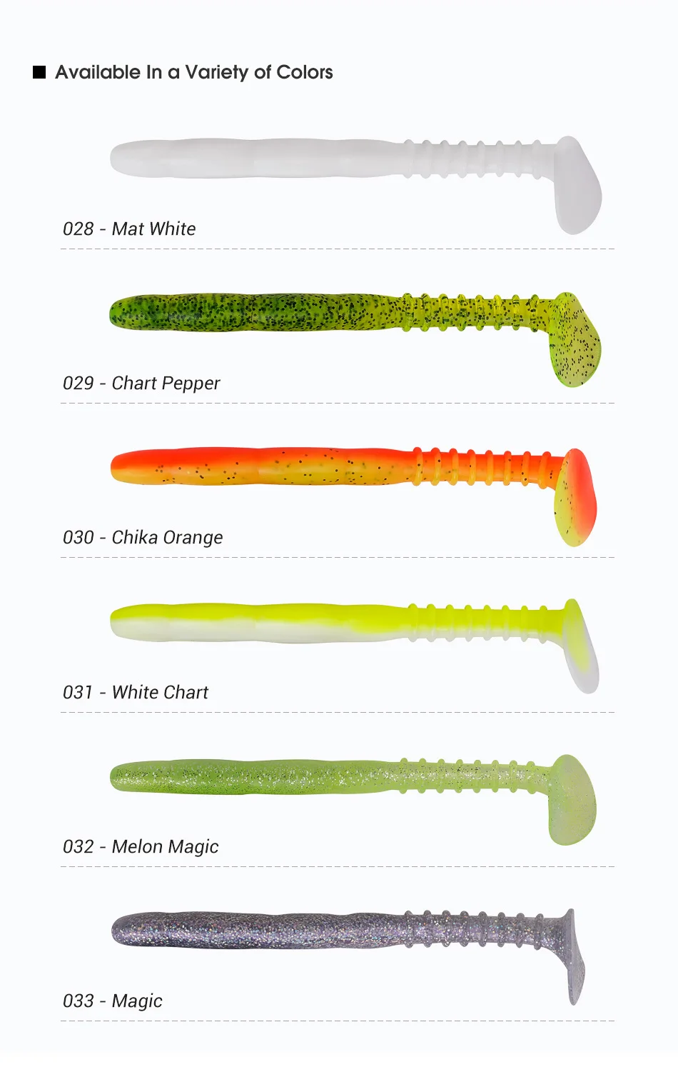 Con un diseño de costilla eficaz, el señuelo mejora la textura y la vibración para un mayor rendimiento de captura de peces.