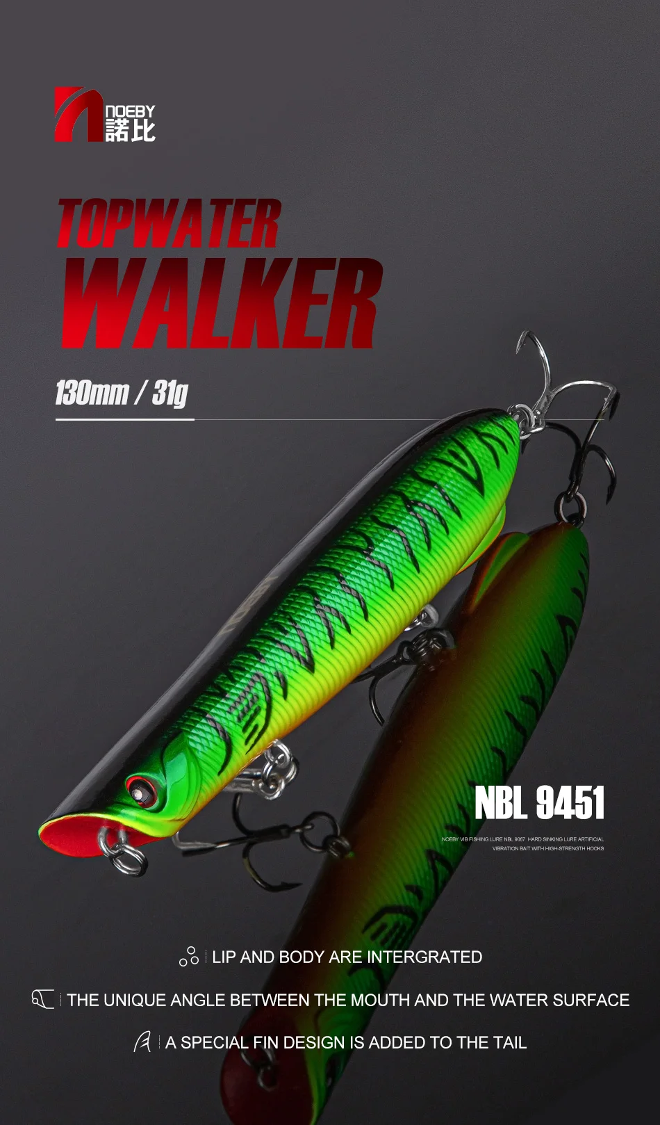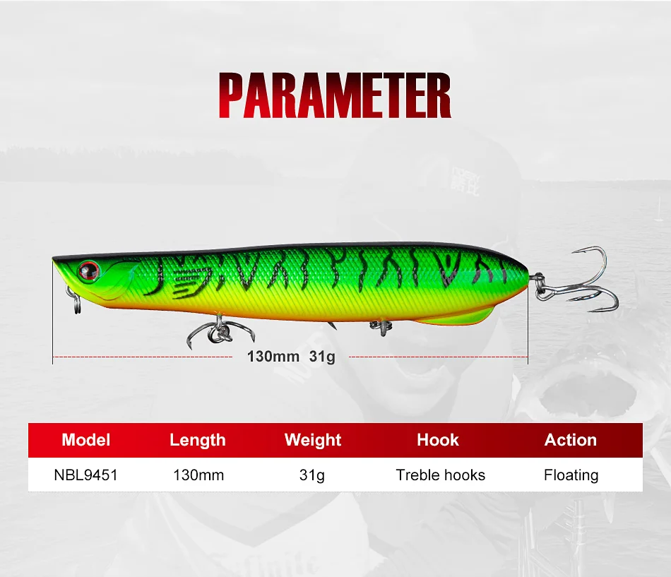 NOEBY-señuelos de pesca con lápiz Topwater de 131mm, 31g, Walker Wobblers, superficie de fundición larga, cebos duros artificiales, señuelo de pesca en el mar de invierno NBL9451