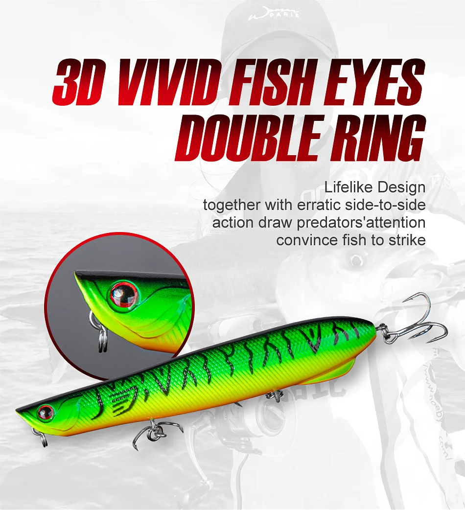 3. El diseño único de la boca, cuando lo arrastra sobre la superficie del agua, el ángulo único entre la boca y la superficie del agua le permite crear más salpicaduras.