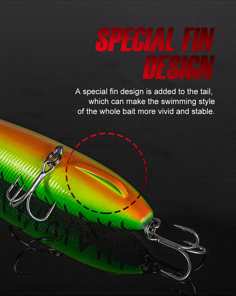 5. Se agrega un diseño de aleta especial a la cola, lo que puede hacer que el estilo de natación de todo el cebo sea más vívido y estable.