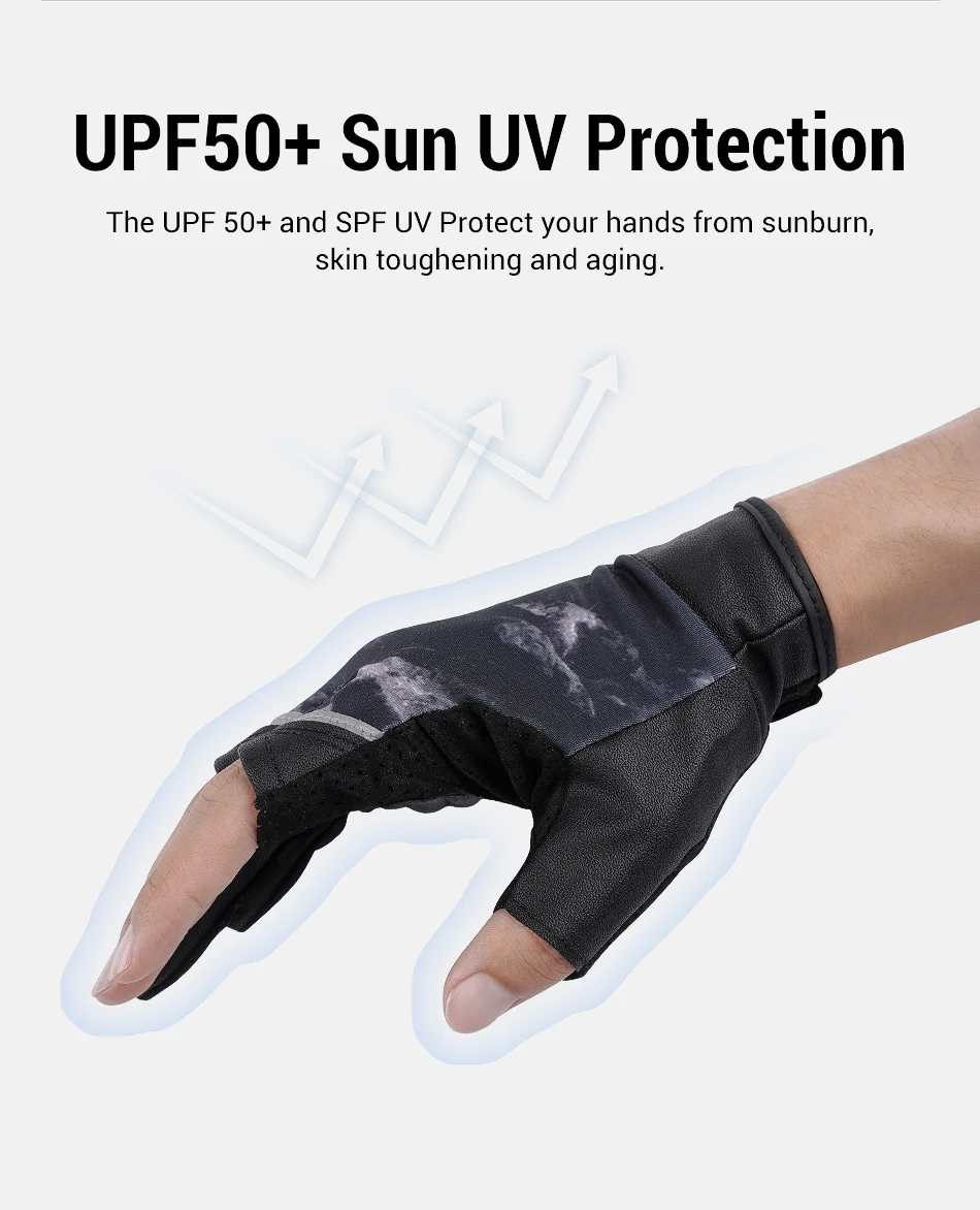 Guantes de pesca Noeby de medio dedo UPF50 + protección solar UV de secado rápido antideslizante ultrafino al aire libre Kayak Pesca guante deportivo