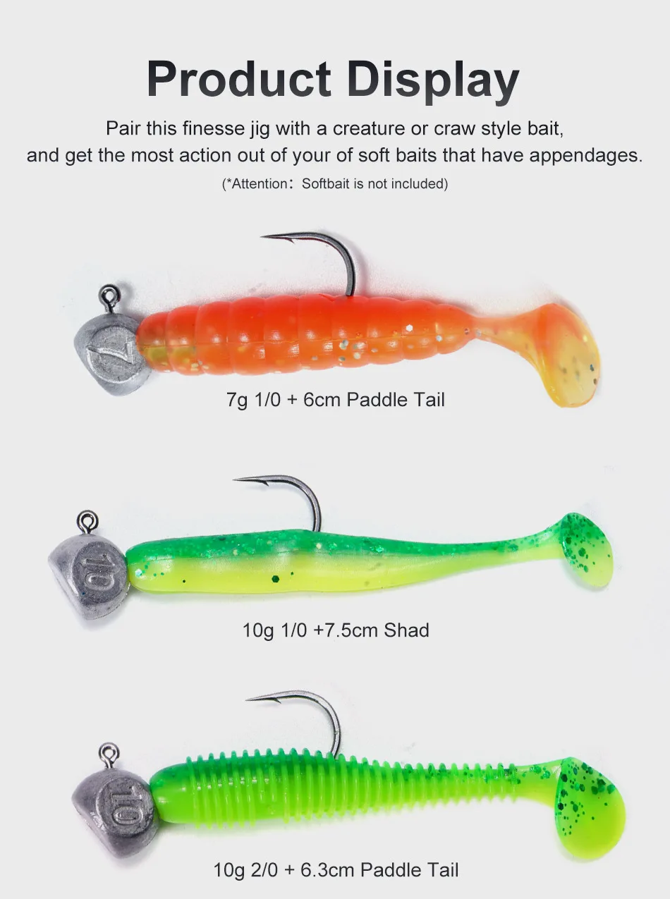 Noeby Jig Head 7g 10g 1/0 2/0 Ned Rig Head Hook Jig Worm Anzuelos de pesca para Lucio Bass Pesca Anzol Accesorios